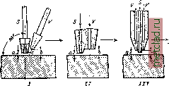 Главная --> Промиздат --> Абразионные материалы движения. МКХ первое проявило инициативу, открыв линии автобусных сообщений по главным магистралям городского движения. В эксплоатацию были пущены 28-местные А. англ. заводов Лейланд , в 25 ЬР, на пневматиках большого размера. Основные размеры этих А. следующие: Длина между крайними точками. кузова ........... Ширина кузова с подножками . . Наивысшая точка кузова от земли Наинизшая Вес автобуса без нагрузки . . . на заднюю ось. . на переднюю ось. Передаточное число в дифференц Скорость на 1 передаче..... на 2 ..... на 3 ..... на 4 (прямая) на заднем ходе .... Размер колес........... 7 830 мм 6 300 мм 2 230 м.\л 3 350 мм 320 мм 5 576 кг 3 608 кг I 968 КЗ 7,86 5,88 км/ч 10,84 км/ч 15, 58 км/ч 29, 87 км/ч 4,66 км/ч 1 085 X 185 мм Результаты эксплоатации А. в московских условиях, по полученным данным, приближаются к работе автосообщений в 3. Европе. По примеру Москвы автобусные сообщения начинают развиваться и в других городах СССР. в. Ругг. АВТОГЕННАЯ РЕЗКА, представляет собою процесс сгорания металла, подогретого газовым пламенем до t° воспламенения, в струе кислорода. А. р. появилась несколько раньше автогенной сварки. Первые опыты англ. инж. Томаса Флетнера, произведенные им в 1888-89 г. в области автогенного метода, относятся именно к А, р. нсе-леза и стали. Большое промышленное значение А. р. получает лишь с 1902 г. Сгорание в струе кислорода железных сплавов наступает при t° металла в 1 350° (белое каление). Сильная струя кислорода, помимо своего участия в реакции горения, исполняет также функции механич. усилия для удаления образующихся на поверхности разреза окислов железа. Из сказанного следуют два основных положения для А, р. металлов: а) А. р. подлежат лишь те металлы, у которых t° воспламенения {t° воспламенения называется t°, при которой начинается сгорание металла в струе кислорода) и t° их окислов лежат ниже t°nA. металлов; к таким металлам молено отнести железо и ![]() Фиг. 1. Горелки резаков раз.личных конструкций, /-эксцентрическое расположение сопел, 77-падаллельное 77/-концентрическое S - кислородное сопло, V - водородное сопло, а и Ь-расстояние до объектов резки. сталь (стальное литье). Чугун, ковкий чугун, красная медь и ее сплавы, алюминий и пр. помощью автогенного способа разрезаны быть не могут; эти металлы м. б. проплавлены даже обыкновенной сварочной го- релкой, при чем место разреза имеет чрезвычайно нечистую оплавленную поверхность, б) Процесс резания (автогенного) распадается на два совершенно отличных один от другого явления-подогрев свароч- ![]() Фиг. 2. Резак с концентрическим расположегшем сопел (общий вид). ным пламенем до t° воспламенения и сгорание. На этом принципе построена горелкм для резки (резак), безотносительно к горючему газу. Фиг. 1 изображает горелки резаков различных конструкций, Фиг. 2 показывает резак нормального типа с концентрическим расположением подогревающего и режущего сопел. Горючим газом, ![]() Фиг. 3. Безопасный резак Фернгольца: 1-маховичок, регулирующий кислород для горения 2-маховичок, регулирующий жидкое горючее. 3-маховичок для закрытия кислорода высокого давления при резке независимо от маховичка /, 4-передняя часть горелки для испарения жидкого горючего, о-головка горелки, где происходит смешение горючего с кислородом. Л.-пламя вспомогательной горелки, как И в автогенной сварке, слулсат ацетилен, водород, блаугаз и пр. Наиболее распростран