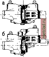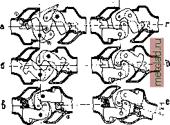 iZOOO 10000 вооо 6000 иооо 2000 ------Общее число Ьагонод. -----Число вагонов, оборцсрваннЬ/х авто-сцепкой. - Общее число несчастных случаев. - Число несчастнЬ/х слцчаев, отнесенных к 1000000 вагонов. Фиг. 2. Диаграмма несчастных сдучаев при сцепке вагонов. в сцепленном состоянии рабочие поверхности сцепки соприкасаются между собой по цилиндрической поверхности с вертикальной образующей (фиг. 3 и 4). Она состоит: из корпуса - 1, поворотной части, называемой когтем - 2, замка - 3 и механизма для открывания замка - 6. Чтобы возможно было произвести сцепку вагонов, необходимо, чтобы оба или, по крайней мере, один из когтей был открыт (фиг. 4, а или г). Для этого надо приводом сбоку вагона Цилиидричеокдя пове ностЬ с веРтикАльяон см. зующей. (фиг. 1, Г) приподнять механизм для открывания замка 6 (фиг. 3) и вновь его опустить. Тогда замок 3 (фиг. 4) приподнимется и останется приподнятым, а особый рычаг-выталкиватель повернет, т. е. откроет, закрытый коготь. При сближении вагонов когти упрутся друг в друга и, скользя по цилиндрической поверхности, закроются. Как только произойдет полный поворот, хвостовик когтя сбросит подвешенный замок 3, к-рый и заклинит хвостовик когтя в закрытом Цилиндрическая поверхность ![]() Фиг. 3. Головка американской сцепки. ![]() Фиг. 4. Механизм автоматического сцепления: а, б - оба когтя открыты, г, д - один коготь открыт, другой закрыт, е - наибольший угол, при котором возможно зацепление. положении (фиг. 4, в, е). Для расцепки вагонов следует лишь приподнять механизм для открывания замка, т. е. поднять замок. При производстве маневров на горках надо заблаговременно расцепить ва- ![]() Фиг. 5. Автоматическое сцепление рукавов отопления и тормозных. ГОНЫ, чтобы затем их спускать; необходимо, чтобы сцепка с отпертым замком сама собой не запиралась сейчас же, а была бы подготовлена к закрытию лишь после того, как вагоны разойдутся, т. е. когда когти откроются. Для этого имеется особый останов, к-рый поддерживает замок в закрепленном открытом положении лишь до тех пор, пока коготь не откроется вполне и тем, выведя сцепку из закреплепного приподнятого положения, не подготовит ее для последующего процесса сцепления. Таким обр. сцепка происходит автоматически, а расцепка производится сбоку вагона. Однако для соединения тормозных рукавов приходится входить между вагонами. В настоящее время уже появились конструкции автоматического сцепления тормозных рукавов, рукавов парового отопления и междувагонных электрических соединений (фиг. 5), но они, вследствие своей сложности, пока широкого распространения не получили. Американская сцепка, по сравнению с винтовой и боковыми буферами, повышает безопасность движения. Вследствие разных нагрузок на вагон и разной упругости рессор, весьма часто высота вагонных рам над рельсом. Фиг. 6. Изгиб буферов, предшествующий телеско-пированию вагонов. ![]() Фиг. 7. Америка£1ская А. с: а -вид сцепленных головок при совпадении осей, б - то же при несовпадении осей на 100 мм. а следовательно и высота оси буферов, различна. Правилами допускается несовпадение осей буферов смежных вагонов по высоте на величину до 100 мм. Если два смежных вагона с разной высотой европейских буферов получили очень сильный толчок, то этот толчок прилагается к буферам в виде пары сил, изгибающих слабые буферные стержни в разные стороны (фиг. 6), при чем буферные тарелки образу