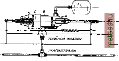 0 5 10 IS 20 25 30 35 АО йЪ 50 55Сек Фиг. 8. Диаграмма давлений пассажирского и товарного тормозов: v-первый вагон, Л-последний вагон. Для ослабления этого явления тройные клапаны товарных поездов имеют каналы для наполнения тормозных цилиндров с весьма малым сечением, что позволяет наполнять цилиндры значительно медленнее, чем у пассажирских тормозов, и потому распространение торможения по длинному поезду происходит достаточно плавно (пунктирная кривая диаграммы фиг. 8). 2) Н е и с т о-щимостью, особенно на участках с длинными крутыми уклонами. 3) Двумя режимами - груженым и порожним . Вес груженого товарного вагона в среднем в 3% раза больше веса порожнего, поэтому если нал<атие тормозных колодок будет соответствовать весу груженого вагона, то при следовании вагона порожним давление колодок будет больше давления от колес на рельсы, колеса за- ![]() Фпг. 9. Схема выпускного клапаиа Вести1ггауза. клинятся И не будут вращаться; если же давление колодок будет соответствовать весу порожнего вагона, то при следовании груженого вагона не будет использована возможная для него тормозная сила. Стремление использовать возможно ббльшую тормозную силу имеет особо важное экономическое значение, т. к. дает возмолч-ность уменьшить число тормозных вагонов в поезде. В тормозе Вестингауза для удовлетворения первому требованию применяются упомянутые узкие каналы в тройном клапане. Для удовлетворения второму требованию в нем вводится такого рода приспособление. Отверстие тройного клапана, сообщающееся с атмосферой, снабжено трубой, имеющей кран и разветвление, одна ветвь которого сообщается с атмосферой, а другая-с особой камерой (фиг. 9) с перегородками, имеющими каждая малое отверстие, с диаметром 0,8 мм. При следовании по обьгчному профилю кран ставится на непосредственное сообщение с атмосферой - равнинный режим, и тормоз действует по-обычному; перед спуском же по длинным уклонам кран ставится на камеру- горный режим. В этом случае воздух из тормозного цилиндра будет очень медленно (ок. 110 ск.) выходить через малые отверстия камеры, что не даст заметного ослабления торможения в течение определенного срока, во время которого запасные резервуары успеют зарядиться. Наконец, для удовлетворения третьего требования применяются для груженого режима два тормозных цилиндра, из которых при порожнем режиме один цилиндр выключается. Из описанного видно, что все эти требования удовлетворяются в системе Вестинхауза недостаточно полно и притом довольно сложными и не совсем удобными мерами. - После испытаиий автоматических тормозов в товарных поездах, произведенных за последние годы, Франция, Польша и Румыния остановились на системе Вестингауза; остальные же страны забраковали эту систему, при чем Германия, Швеция, Дания и Венгрия приняли двукамерный тормоз Кунце-Кнорра, а СССР, Швейцария, Юго-Славия и отчасти Австрия считают необходимым применение новых систем автоматических прямодействующих тормозов, обладающих огромными принципиальными преимуществами. Тормоз Кунц е-К и о р р а. Этим тормозом оборудованы товарные вагонные парки Германии, Швеции и Дании и, по-видимому, будут оборудованы в недалеком будущем вагоны Австрии и Венгрии. Тормоз Кунце-Кнорра, будучи значительно усовершенствованным по сравнению с тормозом Вестингауза, представляет собой развитие иде