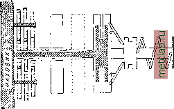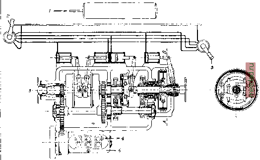 Коэфф-ты трения f и нормальные давления р, применяющиеся при различных сцеплениях, при которых они работают без заметного износа, равны: р кг/см* f ферродо по стали, сухие . . 0,8-0,9 0,3-0,35 сталь по стали, в масле . . . 1,5-2,0 0,04 Коробка передач служит для увеличения крутящего момента мотора; на тяжелой дороге и подъемах мотор должен развивать большой крутящий момент, который, по условиям карбюрации и сгорания в двигателях внутреннего сгорания, не м. б. выше определенной величины. Сопротивления, к-рые приходится преодолевать А., требуют от мотора, чтобы он на ведущих колесах развил вращающий момент, в 4-5 раз больший, чем он может развить; это м. б. достигнуто или путем увеличения литрака мотора А., что в действительности ограничено весом и габаритными размерами двигателя, или же установкой коробки передач, увеличивающей крутящий момент на задних колесах за счет скорости движения. В этом отношении двигатели внутреннего сгорания отличаются от паровых машин и электромоторов, к-рые при данных размерах и числе оборотов могут развивать большой крутящий момент, обусловливаемый гл. обр. емкостью аккумуляторов и производительностью .котла. Нормальная коробка скоростей, путем включения той или иной пары шестерен, позволяет иметь 3-4 разных передаточных числа от мотора к задним колесам (фиг. 5). Чем больше число передач в коробке скоростей, тем меньшей мощности мотор, при прочих равных условиях, м. б. поставлен и тем экономичнее эксп.лоа-тация А. в отношении расхода топлива; при такой коробке мотору предоставляется больше возможности работать при полной, более экономичной нагрузке. ![]() <1>пг. 3. Одподисковое сцепление. Большинство европейских легковьгк А. снабжено 4-скоростной коробкой, американские- исключительно 3-скоростной. В связи с этим мощность моторов америк. машин больше, чем у европейских, что при работе на прямой передаче, в смысле приемистости и способности к подъемам, выгоднее; с другой стороны, при городской езде с часто меняющимся режимом работы, А. с 4-скоростной коробкой экономичнее . Коробки передач грузовых А. по конструкции одинаковы с таковыми для легковых машин (фиг. 6). Некоторые фирмы (N. А. G., Garford, Federal) в коробках скоростей автобусов и грузовиков постоянную пару зацепления делают сменной, с таким расчетом, чтобы передаточное число от мотора к карданному валу было больше единицы (фиг. 7). При данной конструкции, в условиях легкой дороги и при езде без ![]() Фиг. 4. Многодисковое сцепление. ![]() Фиг. 5. Коробка передач легкового автомобиля, груза, работу мотора можно перевести на меньшее число оборотов и полное открытие дросселя, т. е. на более экономичный режим. При механизме добавочных передач на грузовике можно достичь 15-20% экономии топлива против работы на прямой передаче при тех же условиях пути. ![]() Фиг. 6. Коробка передач грузопого автомобиля. . Механизм коробки передач А. требует большой практики для переключения шестерен скоростей. С целью уничтожения переключения шестерен было предложено много интересных конструкций для замены зуб- Нормальный рычаг передач ![]() W тормоз- ной барабан Фиг. 7. Коробка скоростей с добавочной передачей. Когда включена постоянная передача C+D, то 1-я передача становится 5-й, i-n передача становится 6-й, 3-я передача становится 7-й. чатого зацепления фрикционным и даже всей механической коробки гидравлическою или электрома