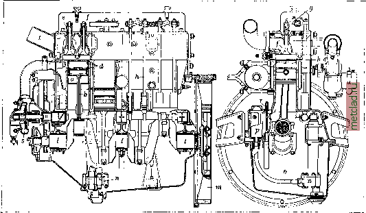 Главная --> Промиздат --> Абразионные материалы нормального и быстроходного автомобильного мотора. Максимальная мощность автомобильного мотора получается при быстроходные моторы дрового мотора с верхним расположением клапанов. Все 4 цилиндра отлиты вместе со своими рубашками для водяного охлажде- гоночнын мотор ре нормальный мотор Р Д ![]() Фиг. 3. Диаграммы распределения мотора: А - начало выпуска, А -конец выпуска, Е- начало всасывания, £ -конец всасывания. работе с некоторым недостатком воздуха ( = 0,84), а максимальный кпд - при некотором избытке воздуха ( = 1,07). На фиг. 4 показано изменение мощности и экономического кид в зависимости от избытка воздуха. С прикрытием дросселя максимальный кпд сдвигается в сторону богатой смеси. Стремление дать легкую, дешевую и в то же время экономную машину заставило обратить внимание на создание мотора небольшого литража (объема цилиндров), но развивающего большую мощность при высоком кпд, В 1905 г. 1 л объема мотора гоночной машины давал И IP, а в 1926 г.-ок. 100 JP (автомобиль Деляж, Fft = 1,5 л, развил 160 Н* при 7 500 об/м.). Число оборотов легковой ма- шины, при ко- 1 I \ I \ i I 1 тором мотор развивает максимальную мощность,-от 2 000 до 3 500 в минуту, у гоночных достигает 7 ООО об/м. и выше. Н ормальный легковой мотор американ. конструкции развивает мощность ок. 12- 15 IP на 1 л объема цилиндра, автомобильные же двигатели европейских марок дают литровую мощность несколько выше. Конструкция автомобильного мотора. Большинство автомобильных моторов имеет отливку цилиндров в одном блоке, часто со съемной головкой. Ровность и легкость хода, связанная с хорошим уравновешиванием движущихся частей, дает большие преимуншства 6-цилиндровому и 8-ци-лшндровому мотору, вследствие чего, несмотря на нек-рую неэкономичность, они получают все большее и большее распространение по сравнению с 4-цилиидровым. На фиг. 5 представлен поперечный и продольный разрез автомобильного 4-цилин- ![]() Фиг. 4. Влияние состава рабочей смеси. ния И имеют отдельную съемную верхнюю головку. В каждом цилиндре ходит поршень а, который соединен шатуном Ъ с коленчатым валом с двигателя. Поршень, для предотвращения просасывания газов между ним и стенками цилиндра, снабжен поршневыми кольцами d. В верхней части, в отдельной головке, расположены рядом всасывающий и выхлопной клапаны ей/ , которые в нужные моменты открываются под действием коромысла д и толкателя h, кулачками i на кулачковом (распределительном) валу к. Коленчатый вал с помещается в картере мотора на трех коренных подшипниках I, на конце его иомещен маховик т. Смазка мотора производится маслом, запас которого находится на дне картера и которое подается масляной помпой п по трубке о через фильтр р в коренные подшипники мотора; отсюда через сверления в коленчатом валу масло достигает до подшипников шатуна и далее, разбрызгиваясь, смазывает цилиндры и все остальные части мотора. Давление масла в масляной системе регулируется посредством клапана г, снабженного регулируемой пружиной. Масляный насос приводится в движение помощью зубчатой передачи от распределительного вала мотора. Тепло через стенки цилиндра отводится в охлаждающую воду, циркулирующую между цилиндром мотора и его рубашкой. Вода получает принудительное движение от водяного насоса s, приводимого в действие от распределительного вала мотора. ПрОйдя руб
