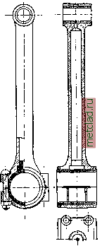 В быстроходных двигателях шатуны часто делают из дуралюминия (уд. вес 2,8, сопротивление разрьшу 42-48 кг/мм, предел упругости 28-34 кг/мм, МОДУЛЬ упругости £:=600 000 кг/см, удлинение от 10 до 18%) или из прессованного электрона (уд. в. 1,82, сопротивление сжатию 39 кг/мм, сопротивление р астяжению 36 кг/мм £ = =450 ООО кг/слг 2, удлинение от 10 до 12%). Ыа фиг. 13и14изо-бражены легкие шатуны-дур алюминиевый и из электрона. В верхней головке шатуна запрессована бронзовая втулка, в к-рой врашает-ся поршневой пален. Нижняя пхатунная головка разрезная, содерлшт бронзовые вкладыши, залитые баббитом. Длина шатуна в автомобильном моторе в 4,2-4,8 раза более, чем радиус коленчатого вала. Расчет тела шатуна надлежит вести на продольный изгиб по формулам Тетмайера. ![]() Фиг. 12. Легкие поршни. ![]()