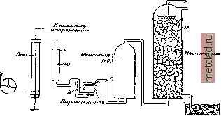Главная --> Промиздат --> Абразионные материалы успехом, чем платина, м. б. применены и другие катализаторы (окись нелеза, висмута, церия, тория, хрома, ванадия, меди). Из них внимания заслуживает только применение окиси железа при t° 700-800°, с выходом от 80 до 85% NHg. Значительную роль при окислительном процессе перехода NHg в HNO3 играет t°. Самая реакция окисления аммиака экзотер- ![]() ![]() Фиг. 9. Схема конверторов Франка-Каро: А-ннгнетатепьный насос, В-газорегулятор, С-контактный аппарат, D-платиновая газовая сетка, нагреваемая электричеством, Е-алюминиевый шлем с слюдяным глазком, F-выход окислов азота. мична: 4NH3-[-502=4NO + 6H20+215,6 Cal. Лишь первоначально необходимо подогреть контактный аппарат,-далее реакция идет за счет собственной теплоты. Технич. конструкция конверторов для окисления аммиака разных систем понятна из приведенных рисунков (фиг. 7-8). Схема производства HNO3 по принятому в на-стояш,ее время методу Франка - Каро приведена на фиг. 9. На фиг. 10 представлена схема окисления NH3 на фабрике Мейстера Люциуса и Брюннинга в Гёхсте. В современных установках окисление NH3 до N0 осуществляется с выходом до 90%, а последующее окисление и поглощение образовавшихся окислов азота водой-с выходом до 95%. Т. о., весь процесс дает выход связанного азота в 85-90%. Получение HNO3 из селитры обходится в настоящее время (в пересчете на 100%-ную НКОз)в 103 долл. за 1 т, по дуговому процессу 97 долл. 30 цент, за 1 ш, в то время как 1 ш HNO3, полученной орсислением NHg, обходится всего 85 долл. 80 цент. Само собою разумеется, что эти цифры м. б. только примерными и в значительной степени зависят от величины предприятия, стоимости электрич. энергии и сырья, но все же они показывают, что контактному методу получения Фиг. 10. Схема окисления аммиака. HNO3 суждено занять в ближайшем будущем господствующее нололсение сравнительно с остальными методами. Лит.: см. Азот и Аммиак; TJ11 m а п п Fr., Enzykl. d. technisch. Chemie, В. И; Waeser В., Die LuftsLlckstofMndustrie, Lpz., 1922. АЗОТНЫЕ УДОБРЕНИЯ. Азот является одним из четырех элементов, входящих в состав молекулы белка. Для образования растительного белка необходим мине ральный азот. При урожае хлебов от 1,75 до 3 ш на га уносится из почвы от 50 до 100 кг азота; значительно больше уносят урожаи корне- и клубнеплодов; например, урожай сахарной свеклы от 20 до 30 т с га уносит 100-170 кг азота. Азотные удобрения, наряду с фосфатными, занимают главное место среди удобрений. В качестве азот. удобр. применяются: а) минеральные удобрения (селитра, сернокислый аммоний и др.), б) бактериальное удобрение, в) органические вещества - гуано, кровяная мука, роговая стружка, жмыхи и т. д., г) зеленые удобрения (см. Удобрения зеленые) и д) навоз. Последние три вида удобрений содержат также и другие питательпые для растений вещества, т. е. фосфор, калий, серу и т. д. Мировое производство первой группы азотных удобрений за 1913 и 1923 гг. выражается след. цифрами (в тыс. т.):