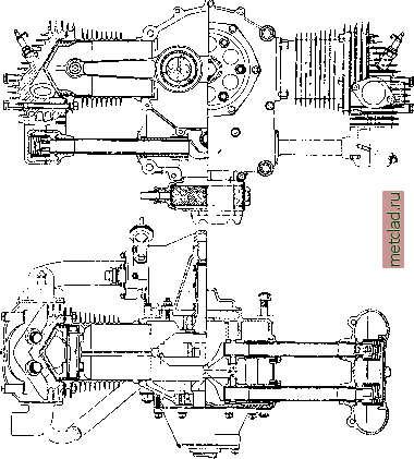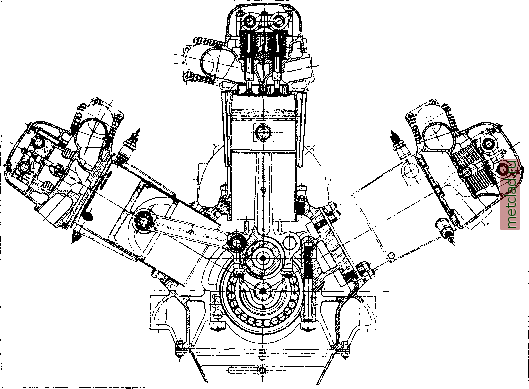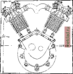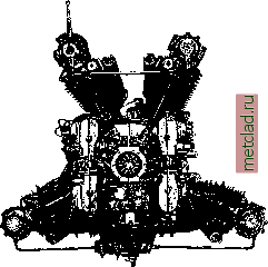 Главная --> Промиздат --> Абразионные материалы 2-цилиндровые маломощные, до 25-35 IP, моторы употребляются только на авиэтках. Расположение цилиндров бывает ![]() Фиг. 6. Двигатель Блекборн с Л-образньш расположением цилиндров. или V-образное, под углом близким к 90°, или же противоположное друг относительно друга (фиг. 6 и 7). Моторы 1-рядныв употребляются с числом цилиндров 4 и 6. Коленчатый вал 4-цилиндрового мотора имеет кривошипы, лежащие в одной плоскости и поочередно направленные то в одну, то в другую сторону от оси вала. При этом по отношению к средине мотора правые и левые кри-. вошипы располагаются симметрично. Вспышки в цилиндрах чередуются через % оборота вала, перебрасываясь с одного на другой в порядке 1-2-4-3 или 1-3-4-2. 4-цилиндровые 1-рядные моторы дают б. или м. удовлетворительное уравновешивание. Кривошипы вала 1-рядного 6-цилиндрового мотора направлены под углом 120° ![]() ![]() Фиг. 7. Двигатель Бристоль СЬегиЬ III 30 ff. Фиг. 8. Схема вала 4-цилиндрового двигателя. друг к другу и располагаются симметрично в обе стороны от средины вала. Работа цилиндров равномерно чередуется через каждые Va оборота вала, в порядке №№ 1-5-3-6-2-4. В 1-рядных 6-цилиндровых моторах получается полное уравновешивание и центробежных сил и сил инерции поршней и шатунов, почему такая схема расположения является одной из наиболее употребительных для авиационных моторов средних мощностей (от 180 до 400 ЕР), 2-рядныв, или V-образные, моторы употребляются в двух схемах: а) по 4 цилиндра в ряд и б) по 6 цилиндров в ряд. В первой схеме угол между рядами цилиндров берется в 90°, и тогда вспышки в цилиндрах чередуются также через 90° оборота вала. Коленчатый вал выполняется плоским, и он совершенно подобен валу 1 - рядного 4-цилиндрового двигателя. В схеме расположения коленчатого вала, указанной на фиг. 8, колена последовательно повернуты друг относит, друга на 90°. В схеме 12-цилиндрового V-образного мотора угол меясду рядами цилиндров в большинстве берется в 60° (фиг, 9), и тогда вспышки равномерно чередуются через 60°. В некоторых случаях, для уменьшения лобовой площади мотора, угол между рядами берут меньше (фиг, 10, Либерти-45°), и тогда вспышки чередуются неравномерно. Вал 2-рядного 12-цилиндрового мотора имеет ту же форму, что и вал 1-рядн, 6-цилиндрового. ![]() Фиг. 9. 12-цилиндровый двигатель Райт 600 №. Трехрядные моторы употребляются в двух схемах: а) по 4 цхииндра в ряд и б) по 6 цилиндров в ряд. В первом случае, 12-цилиндрового W-образного мотора (фиг. 11, ст. 55-56), угол между рядами берется в 60° и вспышки чередуются также через 60°. Вал - плоский, как в 2-рядном 8-ЦИЛИР1ДР0В0М моторе. Во второй же схеме, 18-цилиндрового W-образного мотора, угол берется в 40°, вал выполняется как и в 1-рядном 6-цилиндровом моторе, вспышки чередуются через 40°. М н о г о р я д н ы е моторы мало употребительны. На фиг. 12 представлен исполненный 4-рядный двигатель на 16 цилиндров. Углы между рядами цилиндров следующие: между верхними 45°, между боковыми с одной и другой стороны по 90°, между нижними 135°. Вспышки чередуются равномерно через 45°. Звездообразные моторы выполняются с одной (фиг. 13) и двумя (фиг. 14) звездочками. В каждой звездочке бывает нечетное число цилиндров, от 3 до 9, вспышки чередуются все время равномерно, через один цилиндр. Охлаждение. Для авиационных моторов применяется охлаждение водяное и воздушное. Водяное дает совершенное охла-лэдепие,