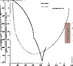 Внутреннее сопротивление. Внутреннее сопротивление свинцового А. весьма мало и представляет малый практический интерес. У больших А. оно равно нескольким десятитысячным ома, у малых - самое большее нескольким сотым. На 1 дм, неразвитой поверхности анода надо ![]() Содержание H2SO4 Фиг. 10. Температура замерзания и удельное сопротивление водного раствора серной кислоты в зависимости от содержания кислоты. особенно на аноде. Проводимость электролита возрастает с t° (для 20%-иой кислоты, примерно, на 1,5% на 1°). 9. Емкость. Емкость С свинцового А. зависит от его устройства, от формы и размеров электродных поддержек, хим. состава и физ. строения активных веществ. При прочих равных условиях, она зависит от условий его слулсбы: релшма разрядки, концентрации электролита ж t°. Зависимость емкости от режима разрядки. С увеличением силы разрядного тока, емкость А. уменьшается. Для слабых разрядных токов (при разрядках, длящихся более 8 ч.) общее отношение, на основании закона диффузии Фика, молшо выразить так: fi + I (19) где а и /9 - постоянные элемента, которые могут быть вычислены по двум разрядкам; ф-ла эта применима к разрядке с изменчивым режимом. Опытная кривая зависимости С от разрядного тока I подобна фиг. И. Для разрядок более сильными токами Пей-кертом в 1892 года установлена эмпирическая функция: Т = Const, (20) или / -. С = Const. (21) где I-разрядный ток в амперах, Т-время в часах, п--постоянная, характерная для