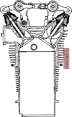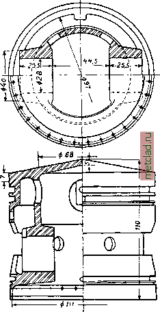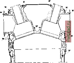 Главная --> Промиздат --> Абразионные материалы Примеры применения материалов, употребляемых для цилиндров А. д. Назначение Сорта стали и состав сплавов Сталь для вн. букс Сталь для клап. патрубков Листов, железо для рубашек Сплав для головок цилиндров Сплав для головок цилиндров Сплав для головок цилиндров Гглерод. С 0,4-0.5% Хром. С 0,4-0,5% Сг 1,3-1,5% .МП 0,6-0,8% Si 0,3% Маргаиц. С 0,4-0,5% МП 1,1% Si 0.3% Хглерод. С 0,16-0,1-2° С 0,05?i iVln 0,5% Si 0,1 ;, Медн. Си 12-14?/ пр. прим. < J ]Медцо-нпк. Си 12-14%, Ni 1- 2% Y-металл Си 3- 5% Mg 5% N1 2% СВОЮ очередь для возможности надевания составляется из нескольких частей, сваренных автогенргым способом. На фиг. 17 и 18 (ст. 59 - 60) показаны цилиндры воздушного охлаждения, стальные и с алюминио- непосредствепно на донышко последнего. Фпг. 15 и 16 показывают конструкцию стального ци.линдра водяного охлаждения. Он состоит из стальной буксы а, клапанных патрубков б, рубашки в, ребер г, втулки д.ги свечей и т. д. Рубашка цилиндра в ![]() ![]() Фиг. 14. Двигатель Сиддле11 <Jaguar с воздушным охлаи(деннем, 38.;-425 IP, с 1 4 цилиндрами в две звеядочки. выми головками, различным способом укрепленными на стальных буксах; а) цилиндр двигателя НАМИ, с алюминиевой головкой п залитой стальной буксой (фпг. 17); б) американский цилинд{)тнпа J, со ста.гыюй буксой ![]() Фиг. 13, Продольный разрез звездообразного двигателя Бристоль Юпитер 420 IP. Фиг. l. i. Цилиндр двигателя .Либерти: о - стальная букса, б - патрубки клапанов, в - рубашки, ! - ребра. и навернутой алюмин. головкой (фиг. 18). В тех случаях, когда внутренняя стальная букса сверху закрыта, клапанные седла устроены непосредственно в теле буксы (фиг. 16); в противном случае, когда букса открыта сверху, посадки клапанов непосредственно ![]() Фиг. 16. Головка цилиндра Паккард. (Буквой W отмечены места сварки.) на алюминиевую поверхность избегают и вставляют особые кольцевые седла (или заливают при литье) из алюминиевой бронзы (фиг. 17 и 18). Цилиндры А. д. ставятся как порознь, так и в блоках. В конструкциях со стальными цилиндрами не употребляют более двух цилиндров в блоке, при алюминиевых же головках или рубашках, наоборот, стремятся связать в блоки но 3, 4 и 6 цилиндров. Такие блоки для водяного охлаждения и способы крепления алюминиевых головок к стальным буксам можно видеть на фиг. 9 и 11. Клапаны А. д. находятся в работе в более тяжелых условиях, чем в каких-либо других двигателях, особенно в отношении нагрева. При вполне исправной работе мотора выпускные клапаны на-Фиг. 17. Цилиндр двигателя греваютсядо700- НАМИ 100 ff. 800°. Впускные же клапаны нагреваются меньше, т. к. проходящая вокруг них свежая смесь воздуха с бензином способствует их охлаждению. Охлаждение клапанов водой не применяется.: Дефектов в работе клапанов стараются избежать подбором такой стали для клапанов, которая работала бы вполне исправно и при высокой t°, как, напр.: 1) вольфрамовая, с содержанием углерода приблизительно 0,6% и ![]() вольфрама ок. 14%; 2) хромовая, с содержанием углерода ок. 0,4 или 1,5% и хрома соответственно около 13 или 11%; 3) силь-хромовая, с содержанием углерода от 0,4 до 0,6%, хрома ок. 8% и кремния ок. 3%. (Средством борьбы с высоким нагревом клапанов является постановка двух клапанов на цилиндр вместо одного. При этом размер каждого клапана уменьшается и вместе с тем понижается t° нагрева его. Наибольший размер выпускного клапана в моторах водяного охлаждения достигает сейчас 72 мм в диам. В последнее время нач