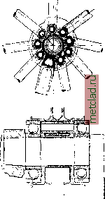 Главная --> Промиздат --> Абразионные материалы разрезной для надевания на вал. В нее кладутся бронзовые или стальные вкладыши, залитые баббитом; в нек-рых случаях заливка баббитом производится прямо на шатун. Для V-образных моторов, где цилиндры i-ro ряда смещены относительно цилиндров 2-го или лежат друг против друга, употребляются три вида специа.пьных сочленений. В одном из них второй шатун сажается непосредственно на первый (фиг. 21). В другом- оба шатуит, садятся па одгт общий ![]() Фиг. 21. Шатунное сочленение: 1 - наружный вильчатый шатун, 2-внутренний шатун. Фиг. 41. Шатунное сочленение; i-наружны!! вильчатый шатун. 2 - впутрсинпй шатун, 3 - вкладыш. вкладыш: один шатун, вилкообразный, садится на края вкладыша, другой - на средину его (фиг. 22). С одним из шатунов вкладыш жестко скрепляется, с другим- имеет необходимую свободу движения. Третий тип сочленения (фиг. 23) предусматривает вынос крепления второго, / малого шатуна на отдельный палец, посаженный на первом, главном шатуне. Этот тип сочленения употребляется для 3-рядных (фиг. 11), многорядных и звездообразных моторов (фиг. 24). Шатунные сочленения для звездо-Фиг. 23. Шатунное сочлене- пбптчттктг лгптпппк нне на пальце: 1 - главный ООраЗНЫХ МОТорОВ шатун, 2 - малый шатун. применялись В разнообразных схемах. В моторе Сальмсон главный шатун отсутствовал, все шатуны были одинаковы и крепились па отдельных пальцах к особой муфте А, посаженной на валу мотора (фиг. 25). Помощью системы зубчаток муфта нужным образом поворачивалась на валу мотора во время его движения. Этот механизм имеет преимущество перед механизмом с главным шатуном в том, что здесь ![]() ![]() Фиг. 24. Шатунное сочленение на пальцах для звездообразных двигателей. все шатуны двигаются вполне однообразно, чего нет в последнем. Из-за конструктивных сложностей он, однако, сейчас оставлен. Вариант сочле- i нения для звездообразных моторов встречается в двигателе Рои. Здесь муфта, вращающаяся на валу, имеет круговые пазы, в которые входят своими соответствующими ползушками шатуны (по три пггуки в один ручеек). При работе мотора шатуны слегка, проскальзывают в ручейках - так, что все время оси шатунов стремятся пройти через центр цапфы кривошипа. В настоящее время этот механизм больше не применяется, В звездообразных моторах муфта иногда сажается на шариковые или роликовые подшипники (фиг. 24). В этом случае делают разъемный вал мотора. Посадка муфты или главного шатуна на шариковых или роликовых подшипниках сильно увеличивает вес сочленения и вместе с ним центробежные силы, В современных быстроходных моторах с числом оборотов от 1 800 до 2 ООО в м, предпочитают поэтому ставить шатуны на простых скользящих подшипниках (фиг. 13). Для еще большего облегчения главного шатуна он и при скользящих подшипниках делается целым, а разъем выполняется на валу. Случаи посадки шатунов на ролики встречаются нередко в маломощных моторах. Но здесь зачастую ролики не имеют обоймы и катятся непосредственно по валу и внутренней поверхности шатуна и тем значл-тельно уменьшаются вес сочленения и центробежные силы. В мощных моторах такая посадка главного шатуна применена в моторе BMW-VI, 450-600 ЬР. Поршневые пальцы подвергаются большим напряжениям изгиба и изнашивания и д. б. цементированы. Ради уменьшения веса поршневые пальцы выполняются пустотелыми, из той же стали, что и для шату