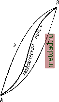 - ) Сумма членов геометрической прогрессии, стоящей в круглых скобках, -равна -. Следовательно, б=А.. (12.1) Отсюда следует, что геодезическая линия на новерхности эллипсоида (при азимутах, не близких к 90 или 270°) делит угол между взаимными нормальными сечениями в отношении 1 : 2 и располагается в данной точке ближе к прямому нормальному сечению. Иначе говоря, угол между геодезической линией, соединяющей точки А и В, ж прямым нормальным сечением в каждой из этих точек равен угла между прямым и обратным нормальными сечениями в данной точке. В дальнейшем этой зависимостью нам придется воспользоваться при полу-учении формулы поправки в направления за переход от прямого нормального сечения к геодезической линии. Если между двумя точками поверхности эллипсоида натянуть упругую нить, то нить примет форму геодезической линии. Действительно, равнодействующая упругих сил нити в каждой точке должна лежать в соприкасающейся плоскости, а сопротивление поверхности направлено по нормали к поверхности. При равновесии нити эти две силы уравновешиваются и соприкасающаяся плоскость будет содержать нормаль к поверхности. § 13. Упрощенный вывод основного уравнения геодезической линии Рассмотрим элементарный полярный треугольник АРВ (рис. 25), образованный дугами меридианов АР, ВР и элементарной дугой геодезической линии ds. Пусть направление начального элемента геодезической линии ds из точки А задано азимутом А. Проведем из точки В элементарную дугу параллели ВС. Разности широт и долгот точек А ж В обозначим через dB и dl, сближение меридианов в точке В - через dA. Из элементарного треугольника АВС имеем: М dB = ds cos А, г dl ==N cos В dl = ds sin A, (13.1) где r - радиус параллели. Имея в виду, что угол при вершине В треугольника СРВ равен 90° - -dA, напишем: cos (90° - В) = ctg dl ctg (90° - dA) tg dl sin В = tg dA dA ~ dl sin В (13.2) dA = ds sin A tgB Из (13.1) и (13.3) напишем dD cos A dl ds dA ds ds M sin A = -cos A N sin A sec В - - sec В sin A tgB = -tgBsinA (13.3) (13.4) Заметим, что первые два уравнения из системы (13.4) могут относиться к элементам любой кривой на поверхности эллипсоида, поскольку они выражают линейные элементы поверхности; последнее уравнение относится только к геодезической линии (см. [2, стр. 71-72] или [55, стр. 33-37]). Система уравнений (13.4) имеет весьма важное значение в высшей геодезии, так как она представляет собой исходные дифференциальные уравнения для решения прямой и обратной геодезической задачи на поверхности эллипсоида.