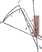 Главная --> Промиздат --> Астрономические методы сечение в А; прямая АВ - хорда, стягивающая дугу АаВ. Возьмем на кривой АаВ текущую точку к и проведем хорду кА. Обозначим центральный угол AnJB через 0, а угол кпА - через в; угол в может иметь значения от О до а. Тогда получим: Z 5Лгг = 90°---; Z Maz, = 90°--, Z кАВ= L кАпа- Z ВАПд = . Проведем через точку к плоскость, перпендикулярную к хорде АВ\ пусть пересечение этой плоскости с хордой АВ будет в точке /с и с кривой АЬВ - в точке А;2- Треугольник kk-Jz изображен на рис. 32. В этом треугольнике угол при вершине к- = f, а. дуга кк = d, т. е. линейному расхождению на новерхности эллипсоида между прямым и обратным нормальными сечениями АаВ и АЪВ. Из рис. 33 следует, что Ak = 2Nsin~. (15.5) Из треугольника Акк (см. рис. 31) кк = Акsin = 2Nsm -sin-. (15.6) Из рис. 32 имеем /с/сз = kk-j, или на основании (15.6) и (15.4) кк- 2Nj sinysin--=ye2acos2B iSin2yli, kjc = d=:ео cos2 В: sin 2А& (а- в). (15.7) Наибольшее линейное расхождение между сечениями АаВ и АЬВ будет Следовательно, из (15.7) получаем в середине дуги АВ, т. е. при 0 = - . £-1 шах =e2a3cos2Bsin2Ai. (15.8) Пользуясь (15.8), вычислим значения dax при различных расстояниях s между точками А ж В. Положим, что широта В = 45°, А = 45°, тогда получим S (км) ... 200 100 50 тах(м) . . . 0,050 0,006 0,0008. Результаты вычислений показывают, что линейные расхождения между прямым и обратным нормальными сечениями малы. Формула (15.8) верна для геодезических линий, когда азимуты их не близки к 90 или 270°, в противном случае следует применять более точные формулы. Дадим без вывода выражение для разности длин геодезической линии и дуги нормального сечения = -ggQ- sin 2Л, cos* Bo. Для s = 600 км- D, 135 ООО Произведенные расчеты позволяют сделать заключение, что разностью длин геодезической линии и дуги нормального сечения при вычислении триангуляции можно пренебречь. § 16. Длина дуги нормального сечения Выразим длину дуги нормального сечения произвольного азимута через длину окружности, построенной радиусом сечения первого вертикала в первой точке. Пусть на рис. М АВ - дуга прямого нормального сечения, проведен-- ![]() ![]() Рис. 34 Рис. 35 ного из точки А на точку В; пусть ее длина равна s, а азимут ili.a- В плоскости этой дуги проведем окружность радиусом, равным радиусу сечения первого вертикала Nt точке А (широта В) и, следовательно, с центром в точке п. Пусть точка Б будет пересечением линии Вп с проведенной окружностью. Обозначим далее центральный угол, под которым усматривается дуга АВ и АВ, через а, расстояние Вп - через z; угол в точке В между линией Вп и радиусом сечения первого вертикала в точке Б, т. е. Бщ, через е. Тогда и8 треугольника Впп, имеем z--m + njil - 2Ы.,ПаПь COS {180° - (90° - В) - е} откуда 22 . Щ 4- пУь + МПаЩ Sin (Б.2 -- 8), ?+sin(B,-B). (16.1) Примем за малую величину первого порядка - или е, тогда, имея в виду, ЧТО, согласно (15.1) и (15.3), ппь = Ne (Бг - В{) cos В, Е = еЦВ2-Ву)созВ; с отбрасыванием членов третьего порядка малости (16.1) примет вид ЖДИ после разложения по биному Ньютона, N2 -1 + -1уГ (16.2) Для перехода к аргументам начальной точки А воспользуемся равенствами I= sin В, + (2 - Bl) cos Bl - sin Bl (16.3) Учитывая (16.3) и (15.1), получаем e2 cos2 5(2 - 1)2 ir=i---T (16.4) ri ГЗ S COS A\ 2 . 2-1 = -=;p = aCOSi.c Полагая i\ = e cos2 B, , = iVr(l- Лстсоз2Л1.2 у Согласно рис. 35 имеем формула (16.4) примет вид (16.5) Из (16.5) получаем (16.6) {-y=NmacosA , Z2 = (1 - ЦО C0S2 12)- Тогда для ds будем иметь ds = V iV2 (1 - Ti2a2 cos2 Л 1.2 + Цо cos* Л 1.2) da, (16.7) G удержанием членов 3-го порядка малости последнее выражение примет вид <fc = JV,(l-if2l£25idM.)da. (16.8) Откуда (16.9)