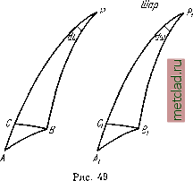 Главная --> Промиздат --> Астрономические методы ![]() ![]() Рис. 48 § 28. Теория Гаусса конформного изображения эллипсоида на шаре. Применение ее к решению главной геодезической задачи Проф. Ф. Н. Красовский в своем труде Руководство по высшей геодезии говорит: ...теория Гаусса конформного изображения эллипсоида на шаре в свое время составила эпоху в области точных наук . Указывая, что значение этой теории в геодезии в настояш,ее время в значительной степени утратило €ВОЮ ценность, далее проф. Ф. Н. Красовский отмечает: ...возможно, что в будущем в геодезии вновь появится новое использование этой гениальной Гауссовой теории . Есть основания считать эту мысль правильной и в настоящее время. Знакомство с этой теорией, простой и оригинальной по идее, изящной по математическому изложению и выводам в применении к геодезии, весьма полезно для геодезиста; она прекрасно показывает достоинство использования поверхности шара для проектирования на нее поверхности эллипсоида с малым сжатием. Применение этой теории в геодезии наглядно и доходчиво иллюстрирует один из основных методов решения основных задач сфероидической геодезии. Учитывая общее значение Гауссовой теории, приводим изложение ее основ и предложенное Гауссом применение теории к решению главной геодезической задачи. Основные формулы конформного изображения эллипсоида на шаре. Конформным называется такое изображение эллипсоида на шаре, при котором бесконечно малый контур на поверхности эллипсоида изображается подобным ему контуром на шаре. Возьмем на поверхности эллипсоида бесконечно малую фигуру abcde с центром О (рис. 48). При конформном изображении эта фигура изобразится на шаре подобной ей фигурой abcde с центром О. В теории картографических проекций доказывается, что при произвольном законе изображения эллипсоида на шаре всегда существуют два взаимно перпендикулярных направления на эллипсоиде, которые на шаре также остаются взаимно перпендикулярными. Эти два направления называются главными направлениями; масштаб изображения по этим направлениям в общем случае будет иметь максимальное и минимальное значения. При конформном изображении масштабы в каждой точке по обоим главным направлениям должны быть равны. Если обозначить масштаб изображения по меридиану через т, а масштаб изображения по параллели - через п, то условие конформности получится тп. (28.1) Введем обозначения: В ж L - широта и долгота некоторой точки на поверхности эллипсоида; и ж (л - широта и долгота изображения точки на поверхности шара. в общем случае закон изображения эллипсоида на шаре выражается уравнениями: U = F{B, L) 1 со=-Л(Д L) V - для которых имеем только одно условие: в пределах изменения В ж L каждым действительным значениям В и L соответствуют действительные значения и я си. Поставим далее условие, чтобы меридианы на эллипсоиде изображались меридианами на шаре и параллели на эллипсоиде - параллелями на шаре. Зллипсоид ![]() В этом случае уравнения (28.2) примут вид: U = h{B) (28.3) Вид функций fx и /з определяется исходя из следующих соображений. Возьмем на поверхности эллипсоида точку А и бесконечно близкую к ней точку В (рис. 49); пусть изображениями этих точек на поверхности шара будут точки Ах и Вх- Обозначим координаты точки А через В и L, а точки В - через В dB ж L -\-+ dL; соответственно на шаре имеем коорди-и (О для точки Ах-, 