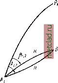 Главная --> Промиздат --> Астрономические методы Если обозначим через Uq широту на шаре, соответствуюш;ую нормальной широте Во на эллипсоиде, то математически условие первое выразится так: R cos Un . /по о\ о=о = а=1.. (28.8) где и о - масштаб изображения на параллели под широтой Во- Для математического выражения второго условия напишем сначала выражение для масштаба в виде -0+ [-dTjo- + -2-+ [-ш)о-6-+ где В - широта текуп];ей точки, находяш;ейся на расстоянии В - Во от нормальной широты. С учетом (28.8) напишем -=1+().( - .)+().+().+--- Условие медленного изменения масштаба при удалении от параллели с широтой Во целесообразно выразить так: (). = 0 (w). = 0- (28.9) Выражения (28.8) и (28.9), даюш,ие три уравнения, позволяют определить три постоянные. Находим производные (28.9), учитывая (28.8), и совместно решаем три полученных уравнения; после соответствуюш;их преобразований получим: sin Bq sin Uq -a2 1 + e2 cos4 Bq 1 -e2 (28.10) ir- U 2 ; (i-esinBQ\- .98 11 --tg(-- + -L) U + .sinBoJ RYM (28.12) Из (28.12) следует, что радиус шара равен среднему радиусу кривизны эллипсоида в точке с широтой Во- В математической картографии, когда стоит задача изображения всего :эллипсоида на шаре, принимают L = (o, т. е. а = 1, А; = 1 (что означает совпадение плоскостей экваторов эллипсоида и шара) и В а 1--sin В или R =а. При условии (28.9) легко найдем выражение масштаба т Вычисляя получаем в логарифмическом виде l m~ 2 g2 (l e2)sinBoCOsBo /D n 43 OQ.AW \gm----(l--e2sin2Bo)2--(B-Bof. (28.13) ![]() Рис. 50 Для (Б - So) = 1 и Бо = 55° lgm = 0.000 00001. Отсюда можно сделать весьма важный вывод: в пределах зоны, ограничен-1° 1° нойБо - 1-jh5o + 1-,t. е. в пределах пояса шириной до 250 км, практически масштаб можно считать равным единице при указанном выше условии выбора постоянных. Этот вывод исчерпываюш;е показывает выгоду использования поверхности шара для проектирования поверхности эллипсоида и малую величину искажений, обусловленную незначительностью сжатия земного эллипсоида. Таким образом, если триангуляционная сеть расположена на расстоянии 100-120 км к северу или югу от параллели с нормальной широтой (и, конечно, как угодно далеко по долготе), то можно считать, что элементы триангуляции на эллипсоиде переносятся на шар без искажений: угловые - по конформности проекции, а линейные - по малости искажений. Этим обстоятельством мы воспользуемся при выводе формул для решения геодезической задачи. Однако в азимуты приходится вводить поправку, хотя проекция и конформна. Дело в том, что геодевическая линия на эллипсоиде изображается на шаре кривой, не совпадающей с дугой большого круга. Пусть на рис. 50 кривая AyNBi - изображение геодезической линии АВ si шаре; эта кривая будет двоякой кривизны. Азимут ее в точке А ио кон- tpMHOCTH изображения в точности равен азимуту А геодезической линии эллипсоиде. Пусть АМВ - дуга большого круга, соединяющая точки Ai и By- Чтобы в дальнейшем иметь возможность пользоваться формулами сферической тригонометрии, необходимо в азимут кривой ANB ввести поправку, равную разности азимутов кривой ANB- и дуги большого круга AjMB. После этого треугольники на шаре будут иметь стороны, являющиеся дугами больших кругов. Однако вследствие близости земного эллипсоида к iliapy эта поправка вводится лишь в значения направлений, конечные точки которых расположены на расстоянии более 50-70 км от параллели с нормаль-нбй широтой Б Q. При расположении точек на меньших расстояниях этой поправкой можно пренебречь. Упрощенные выражения для {А - Р): 1.2- Pi. 2=