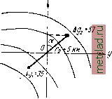 Главная --> Промиздат --> Астрономические методы Так как t 2 12i? и г = 111,2г1?, с = 0,000066 Подставляя в последние выражения числовые значения р, g и Л получаем: Л = 1339,6 В-0,315 С = 0,000066 Так как г =Щ,т:о йф = . Подставляя в основные формулы (66.4) значение йф и заменяя пределы интеграции, получаем: (66.11) (66.12) (66.13) 6371 км, (66.14) Г1 2Я COS а dr da Ti 2Л sin а da (66.15) где Ti - верхний предел интеграции, равный примерно 1000 км. Формулы (66.15) позволяют практически достаточно точно решать задачу вывода уклонений отвесных линий с учетом влияния аномалий в радиусе до 1000 км. Интегрирование по формулам (66.5) не может быть выполнено аналитически, так как нам известны лишь числовые значения входящих под знак интеграла аномалий силы тяжести Ag для некоторых дискретных точек. Поэтому интегрирование должно проводиться численным методом, как суммирование по элементарным участкам, на которые подразделяется область интегрирования. Число таких участков должно быть достаточно велико для того, чтобы процесс суммирования приблизить к процессу интегрирования. Очевидно, каждая из суммируемых величин должна быть выражена ее средним значением на данном элементарном участке. Однако с применением метода численного интегрирования возникает затруднение при подсчете влияния зоны, непосредственно окружающей данную точку. Действительно, функция Q при г = О обращается гя ад в бесконечность, а J cos а da и J sin а da обращаются в нуль. Выражения (66.15) обращаются в неопределенность, п обычный процесс суммирования становится невозможным. Таким образом, влияние ближайшей зоны, за которую принимают зону при г от О до 5 км, учитывают специальным методом отдельно от области, лежащей в пределах от 5 до 1000 км. Следовательно, вычисление по формулам (66.15) для зоны радиусом в 1000 км разбивается на две части: учет влияния ближайшей зоны от О до Tq (5 км) и учет влияния остальной части области радиусом 1000 км и более. Рассмотрим отдельно методы вычислени; поправок в каждой части. 2. Вычисление поправок за влияние аномалий в центральной зоне Вследствие малости зоны формулу (66.12) для можно написать, огра- ничившись первым членом - т. е. <?2 = -. (66.16) тогда (66.15) для центральной зоны примут вид: Го 2п = о /-л = - ТГ- f f - cos а drd а Го 2п 2 ng J Ag COS а drd а (66.17) Если Ag постоянно, то последние выражения обращаются в нуль; поэтому написанные формулы будут верны, если вместо Ag написать Ag - AgQ, где Ago - постоянная величина, за которую в данном случае выгодно принять аномалию силы тяжести в исследуемом пункте. Таким образом, имеем для Ео , Го 2 л i; = Г Г AKziAE cos а dr da. (66.18) lini£- = il. (66.19) Выражая через составляющие по осям хжу, получаем -т = - oosaH--sma, (66.20) dAg dAg /Дв и суть градиенты аномалии срлы тяжести по осям координат хжу. Подставляя (66.20) в (66.18), вместо ~ - после интегрирования получаем 5 -. = -. (66-21) И аналогично Ло.го - 2g ~di~ Подставляя числовое значение ~ == 0,105 , получаем окончательно: =0, Го -o,roVvo rj; --0,105 го Значения и дх ди дх dAg (66.22) легко могут быть получены с карты изоаномал. Для их определения рекомендуется поступать следуюпим образом. Пусть О - точка, для которой вычисляется уклонение отвесной линии (рис. 124). Проводим направление максимального градиента, т. е. направление, перпендикулярное к изолиниям и проходящее через данную точку, в обе стороны от точки О. Определив значения аномалий силы тяжести на расстоянии, равном Го, в обе стороны от точки О, т. е. и Ag, получим максимальный градиент , который