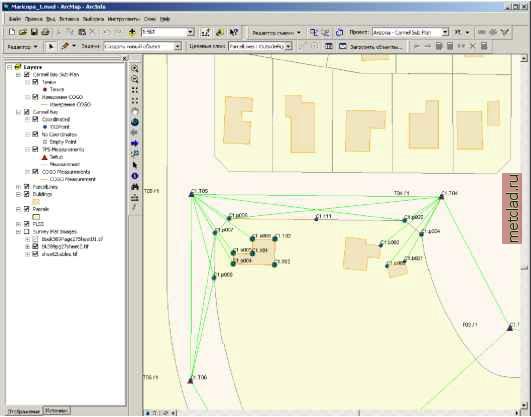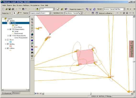 Главная --> Промиздат --> Геодезически определенные классы Организация геодезических данных в проекты Как и для всех географических даннгх, вы создаете и просматриваете наборы геодезических даннгх с использованием ArcCatalog . Организуйте новые проекты и папки проектов и структурируйте свои проекты так, чтобы их можно бпло наиболее эффективно использовать в вашей организации. Проект определяет специфическую задачу по сбору геодезических данных, которая может подразумевать любую деятельность, имеющую отношение к съемке, начиная от контрольной полевой съемки и заканчивая вводом даннгх с плана территориальной единицы. Папки проектов позволяют вам группировать проекты; внутри любой папки вы можете создавать вложенные папки. tArcCatdlog - Arclnfo - □\arcgi5\ArcTutor\5urvey Andly5t\TutorJal data\5 ![]() Перед началом работы над новым заданием вы создаете прое(т съемки в наборе геодезических данных. В нем будут размещаться ваши данные. В этом примере показана база геоданных, именуемая Arizona, которая содержит целый ряд векторных и растровых наборов данных, а также набор геодезических данных, под названием MaricopaSurvey, в который входит несколько папок проектов. Связывание геодезических точек с координатами пространственных объектов Модуль Survey Analyst представляет измерения и геодезические точки в ArcMap с использованием геодезических слоев. Объекты, хранящиеся в геодезически определеннгх классах пространственных объектов, могут бпть связаны с геодезическими точками в наборе геодезических даннгх - вы можете связать геодезические точки с вершинами объектов, при желании связанные таким образом вершины объектов могут бпть помянуты к местоположению геодезических точек. При выполнении обновления местоположения геодезических точек, вы можете синхронизировать изменение положения пространственнгх объектов на основе этих новых даннгх. Связи отображаются на карте в виде линий связи. ![]() Модуль Survey Analyst связывает векторные пространственные объекты в базе геоданных с измерениями, вычислениями и геодезическими точками, хранящимися в той же базе геоданных. Объекты могут быть привязаны к геодезическим точкам. Визуализация эллипсов ошибок Источниками информации для ГИС-даннгх служат аналоговые карты, преобразованные в цифровые форматы посредством оцифровки, сканирования или ручного ввода даннгх координатной геометрии. Использование этих методов не позволяет качественно передать пространственное местоположение отдельнгх объектов. Модуль Survey Analyst предоставляет статистическую информацию о качестве пространственного местоположения геодезических точек, и эта информация может быть передана другим геодезическим точкам с помощью метода распространения ошибки. Модуль Survey Analyst позволяет вгчислить качество пространственного местоположения для объектов, связанных с геодезическими точками. ![]() Модуль Survey Analyst хранит информацию о пространственной точности геодезических точек. Эту информацию можно импортировать, рассчитывать или распространять по вычислениям и отображать в виде эллипсов ошибок. Размер и угол поворота эллипса отражают относительную величину и направление ошибки.