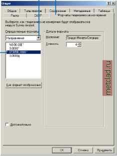 Главная --> Промиздат --> Геодезически определенные классы Пользовательская настройка единицы отображения Возможна ситуация, что Survey Analyst не поддерживает единицу измерения и формат отображения, которые вам необходимы. В этом случае, вы можете создать коэффициент пересчета масштаба и формат отображения для данной единицы измерения. В предыдущем разделе рассказывалось, как создать новый коэффициент пересчета шкал. Задания из данного раздела демонстрируют, как изменить способ отображения этих единиц измерения. См. также Информацию о создании коэффициента пересчета шкал вы можете найти в заданиях в начале данного раздела. Создание пользовательского отображения для азимутов, отсчитываемых от направления на юг, с использованием градусов и минут 1. В меню Инструменты выберите Опции. 2. Откройте закладку Форматы геодезических измерений. 3. В выпадающем меню Определяемые форматы выберите тип единицы, для которой вы хотите настроить параметры отображения. 4. Выберите единицу отображения, на основе которой вы хотите задать новый формат. ► ![]() 5. Отметьте опцию Дополнительно. 6. Нажмите кнопку Новый. 7. В выпадающем меню Основан на коэффициенте пересчета шкал выберите коэффициент пересчета, на основе которого вы хотите задать формат отображения. В данном примере, это коэффициент пересчета, определенный для азимута на юг. 8. Наберите имя формата отображения. 9. Дважды щелкните на поле Аббревиатура и напечатайте новые аббревиатуры для подпо-лей. В данном примере, 5 используется для сокращенного обозначения градусов, а ц -минут. 10. Удалите лишние подполя, щелкнув на крайнем левом столбце блока подполей и выбрав опцию Удалить. В данном примере, вам не нужны секунды, обозначение для которых и соответствующее подполе вы можете удалить. 11. Нажмите Как формат отображения. 12. Нажмите OK. ![]() Сохранение пользовательских единиц измерения 2. 3. 4. 5. 6. Повторите шаги предыдущего задания, чтобы создать пользовательскую единицу отображения. Нажмите Сохранить. Перейдите к месту на диске, где вы хотите сохранить файл с единицей измерения. Наберите название файла. Нажмите Сохранить. В диалоговом окне Опции нажмите OK. ![]() ![]()