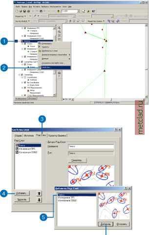 Главная --> Промиздат --> Геодезически определенные классы Геодезические слои используются для представления одного или нескольких проектов съемки в наборе геодезических данных. Это обеспечивает гибкость в работе с данными, так как вы можете использовать единый геодезический слой для всех проектов съемки, либо добавлять геодезический слой для каждого проекта. Проекты, представленные геодезическим слоем, выбираются в диалоге Свойстваслоя. ![]() Вы можете перетащить наборы геодезических данных из ArcCatalog в ArcMap методом перетаскивания ( drag and drop ). ![]() Используйте диалоговое окно Свойства слоя для определения геодезических проектов, которые отображает геодезический слой. Создание геодезических слоев Если у вас нет предопределенного геодезического слоя, вы можете создать новый слой на основе существующих геодезических данных. Создайте геодезический слой, добавив проект, папку проекта или набор геодезических данных на карту. ArcMap создаст новый геодезический слой, который представляет набор добавленных вами проектов съемки. Если геодезический слой на карте уже есть, вы можете либо добавить, либо удалить подслои для поддерживаемых геодезических классов, определить диапазон масштабов, при котором эти подслои являются видимыми, и определить способы их отображения. Подсказка Добавление папки проекта Вы можете добавить все проекты папки на карту, нажав на кнопку Добавить данные, перейдя к месту на диске, где хранится нужная папка, выбрав ее и нажав Добавить в диалоговом окне Добавить данные. Вы также может взять и перетащить из ArcCatalog в ArcMap всю папку целиком. Добавление набора геодезических данных в ArcMap 1. На стандартной панели инструментов ArcMap нажмите кнопку Добавить. 2. Щелкните на стрелке выпадающего меню Искать в: и перейдите к базе геоданных, в которой хранится набор геодезических данных, который вы хотите добавить на карту. 3. Выберите набор геодезических данных. 4. Нажмите Добавить. ArcMap создает новый слой на карте, который представляет все проекты, входящие в набор геодезических данных. ![]() Добавление проекта съемки из ArcCatalog 1. Расположите окна ArcCatalog и ArcMap таким образом, чтобы на экране вы могли видеть оба окна одновременно. 2. Перейдите в ArcCatalog к проекту съемки, который вы хотите добавить на карту. 3. Щелкните кнопкой мыши и, удерживая ее, перетащите проект из ArcCatalog. 4. Поместите проект в область отображения карты в ArcMap. ArcMap создает новый слой на карте, который представляет данный проект. ![]() Подсказка Свойства слоя Вы можете открсть диалоговое окно Свойства слоя для геодезического слоя ии подслоя, дважды щелкнув мышью на названии слоя в таблице содержания. Подсказка Удаление подслоя Чтобы убрать подслой, щелкните на названии подслоя в списке Слои и выберите опцию Удалить. Подсказка Порядок отображения подслоев Чтобы отобразить подслой поверх какого-либо подслоя ии под ним, щелкните на названии подслоя в Списке слоев и воспользуйтесь стрелками вверх и вниз, чтобы переместить его в нужное положение. Слой, расположенный в самой верхней части списка, будет отображаться поверх всех остальных. Подсказка Свойства подслоя Чтобы получить доступ к свойствам подслоя в диалоге Свойства слоя, щелкните на названии подслоя и выберите опцию Свойства. Добавление нового подслоя к геодезическому слою 1. Щелкните правой кнопкой мыши на названии г