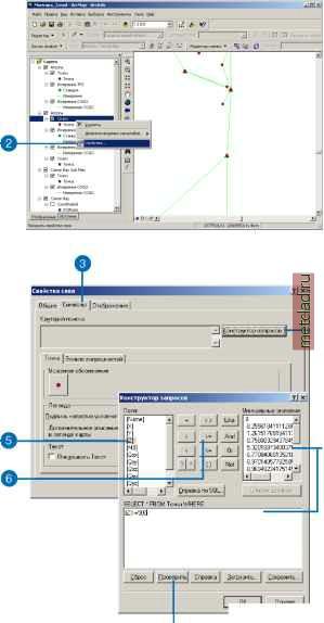 Главная --> Промиздат --> Геодезически определенные классы Использование полей атрибутов для отображения объектов Воспользовавшись запросом к подслоям на основании их атрибутов, вы можете показывать геодезические точки и измерения на карте различными способами в зависимости от атрибутов геодезических классов, которые представляют подслои. Например, вы можете использовать различные символы для геодезических точек, расположенных выше или ниже определенной высотной отметки. Вы можете также выбрать набор проектов съемки, которые должны быть представлены геодезическим слоем. Подсказка Использование оператора НЕ (NOT) При отображении двх подслоев одного и того же класса, часто бывает необходимо формулировать .запросы, в которых один из подслоев пово-положен другому. Иначе символы будут прорисовываться один поверх другого. Bi монете избежать этого, повторив запрос и поставив оператор NOT перед названием соответствующего подслое. Определение того, какие геодезические объекты будут отображаться на основе их полей атрибутов 1. Щелкните правой кнопкой мыши на подслое геодезических точек. 2. Нажмите Свойства. 3. Выберите закладку Символы. 4. Нажмите Конструктор запросов. 5. Дважды щелкните на поле, которое вы хотите использовать в запросе. 6. Выберите требуемый логический оператор. 7. Просмотрите список уникальных значений и выберите значение, которое вы хотите использовать при конструировании запроса или введите значение в окне запроса. 8. Нажмите Проверить, чтобы подтвердить правильность запроса. 9. Нажмите OK. ![]() Представление проектов в геодезическом слое При отображении геодезической информации на карте зачастую вам необходимо просматривать ее, основываясь на конкретном проекте или наборе проектов. Геодезический слой отображает целый ряд проектов съемки. Изменить то, какие проекты съемки представлены слоем, легко в диалоге Свойства слоя. Изменение проектов, представленных в геодезическом слое 1. Щелкните правой кнопкой мыши на слое с геодезическими данными. 2. Выберите опцию Свойства. 3. Откройте закладку Проекты съемки. 4. Разверните папки съемки и отметьте проекты, которые вы хотите сделать видимыми в геодезическом слое. 5. Нажмите OK. ![]() ![]() Обозначение символами связей пространственных объектов Геодезические точки часто представляют местоположение прост-ранственнгх объектов. Когда эти объекты представлены в виде слоев карты, вы можете связать их с точками геодезической съемки. Эти связи могут б]ть показаны на карте. Помимо этого, вы можете отобразить вершины пространственных объектов, основываясь на их связях с геодезическими точками. Вершины пространственнгх объектов могут находиться в трех различнгх состояниях по отношению к геодезическим данным: Несвязанные Связанные с геодезическими точками Связанные с геодезическими точками и привязанные к ним. Вы можете определить для себя возможность отображать или нет эту информацию; а также подобрать условные обозначения, которые будут использоваться для представления различных состояний связей. См. также Чтобы узнать, как создавать связи и обновлять геометрию объектов на основании этих связей, обратитесь к Главе 8 Редактирование геометрии пространственных объектов . Включение символов для связей пространственных объектов 1. В Главном меню выберите Вид, а затем опцию С