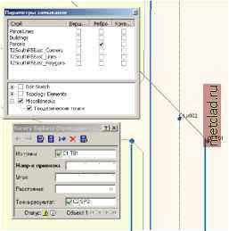 Главная --> Промиздат --> Геодезически определенные классы Ввод значений с использованием карты В предыхдущих разделах рассказывалось, как добавить значения измерений и названия точек на страницы деталей вычислений. Часто точки, необходимые для втчислений, отображаются на карте. Помимо этого, значения, используемые в построениях координатной геометрии, можно получить, основываясь на относительной геометрии геодезических точек и пространствен-н1х объектов, представленных на карте. Помимо прямого ввода (набора с клавиатуры) названий точек и значений вычислений, существуют другие методы заполнения полей, основанные на использовании карты. Каждая страница втчислений работает совместно с инструментом карты, который носит название Вычисление. Этот инструмент позволяет интегрировать страницы втчисле-ний и карту. Он использует среду замыкания Редактора. При работе со страницами деталей, вы можете использовать инструмент Вычисление для получения информации с карты. Инструмент позволяет вам осуществлять ввод значений в поля путем привязки и выбора геометрии объекта либо путем вытягивания направлений и длин. Когда определенное поле является текущей целью для ввода дан-н1х - или полем фокуса - название поля отображается жирным шрифтом, давая визуальное указание на то поле, в которое будут вводиться данные. В этом разделе проиллюстрированы базовые понятия работы с инструментом Впчисление и различными полями фокуса. Текст поля, находящегося в фокусе, выделен жирным шрифтом Ввод в поле точки Врпл r пппй кпппли1ят Напр-е привязк! Точка-результат VC2,SP2 Стзтнс: Ь ® Объект 1 ![]() Текст, выделенный жирным шрифтом, указывает на то, что поле идентификатора точки находится в фокусе. Привяжитесь к геодезической точке, которую вы хотите добавить в поле идентификатора точки, и щелкните на ней мышью. Текст в поле координаты X выделен жирным шрифтом. Поле координаты находится в фокусе. Привяжитесь и щелкните мышью в том месте на карте, которое соответствует координатам, которые вы хотите ввести в поля X и Y. Ввод в поле Направление методом одного щелчка Ввод в поле Направление методом перетаскивания (drag) ![]() Текст поля направления выделен жирным шрифтом и находится в фокусе. Положение точки Из точки определяет начало линии направления. Щелкните на карте в том месте, где находится конечная точка вектора. ![]() ![]() Перетащите линию, определяющую направление, которое вы хотите ввести; отпустите левую клавишу мыши в любом месте карты, либо после привязки к известному положению. Обратная связь карты указывает на направление переноса. Ввод в поле Направление путем привязки к ребрам ![]() Привяжитесь к ребру пространственного объекта, чтобы зафиксировать направление ребра. Поскольку каждый сегмент может иметь два возможных направления, используемое значение направления зависит от того, ближе к какому концу сегмента вы щелкните мышью. Направление обратной связи карты показывает, к какой стороне сегмента привязан курсор.