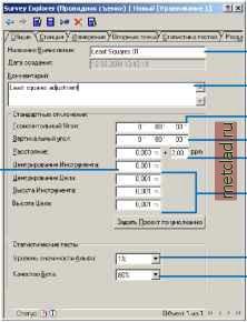 Главная --> Промиздат --> Геодезически определенные классы Обратная засечка Можно вычислить координаты для местоположения станции, если у вас есть по меньшей мере три видимые опорные точки и отсчеты их горизонтальных углов. Преимущество этого метода заключается в том, что расстояния не требуются. При использовании этого вычисления важно быть уверенным в том, что у вас есть приблизительные координаты для точки, которую предстоит вычислить, чтобы вы могли избежать проблемы окружности для обратной засечки. Если все ваши известные и неизвестные точки будут лежать примерно на одной окружности, то скорее всего ваше решение будет ненадежным. Алгоритм вычисления не может определить это без дополнительных измерений до известных точек, которые не лежат на этой окружности. Ввод измерений из полевого журнала - пример, основанн1й на обратной засечке 1. Откройте палитру инструментов Вычисление, переместите курсор в последний ряд кнопок палитры и выберите инструмент Обратная засечка. 2. Наберите название вычисления и нажмите Tab. 3. Напечатайте комментарий для теодолитного хода и нажмите Tab. 4. Введите границы интервала, которые вы считаете допустимыми для стандартного отклонения для горизонтального положения, по высоте и для ориентации. 5. Откройте закладку Станция. 6. Щелкните на поле идентификатора точки для Точки станции, наберите название для новой геодезической точки и нажмите Tab. 7. Наберите название станции и нажмите Tab. 8. Заполните свойства в Деталях станции. ► ![]() ![]() 9. Откройте закладку Измерения. 10. Привяжитесь к наблюдаемой точке на карте и щелкните на ней мышью. Если точка не видна на карте, напечатайте ее название в окне для ввода текста и нажмите Tab. 11. Поставьте отметку в окошке Ориентация, если наблюдаемая точка является опорной точкой. Нажмите Tab. 12. Наберите значение угла в поле HzAngle (Горизонтальный угол). Удерживая клавишу Ctrl, нажмите Enter. Фокус переместится на последнее поле. Нажмите Enter. 13. Повторите шаги 10-12, чтобы добавить новые строки для каждого ввода из полевого журнала. 14. Нажмите Вычислить. ![]() ![]() Вычисление обратной засечки Уравнивание по методу наименьших квадратов Процедуры и алгоритмы, поддерживаемые уравниванием по методу наименьших квадратов, делают это вычисление наилучшей из возможных методик обработки нескольких инструментальных станций в сети измерений. Используя вычисление по методу наименьших квадратов, вы удаляете ошибки из измерений и улучшаете качество ваших геодезических точек. Чтобы получить представление об основных понятиях, лежащих в основе уравнивания по методу наименьших квадратов, обратитесь к Главе 3 Основные понятия модуля Survey Analyst . По сути, уравнивание по методу наименьших квадратов позволяет нескольким измерениям одновременно участвовать в одном вычислении. Этот процесс обеспечивает лучшую подгонку положений геодезических точек и позволяет выявить дефектные измерения, которые ► Обработка нескольких станций TPS с использованием уравнивания по методу наименьших квадратов 1. Откройте палитру инструментов Вычисление, переместите курсор в последний ряд кнопок палитры и выберите инструмент Уравнивание. 2. Наберите название вычисления и нажмите Tab. 3. Напечатайте комментарий для уравнивания и нажмите Tab. 4. Введите априорное значение стандартного отклонения для отсчетов горизонтальных 