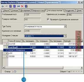 Главная --> Промиздат --> Геодезически определенные классы нуль-гипотезы (H0)), не является специфической. Это означает, что если нуль-гипотеза отклонена, необходимо найти причину отклонения путем обнаружения проблем в измерениях. Если вы предполагаете, что гипотеза H0 отклонена из-за большой ошибки в одном из измерений, для идентификации этих измерений вы можете использовать W-тест. W-тест и слежение за данными Отклонение F-теста не приводит напрямую к выявлению источника отклонения гипотезы. В том случае, если нуль-гипотеза отклонена, должны быть сформулированы другие гипотезы, которые описывают возможные ошибки. Простой, но эффективной гипотезой, является условная альтернативная гипотеза, основанная на допущении, что выброс присутствует в единственном измере- Подсказка Отключение измерений W-тест предполагает, что выброс присутствует в единственном измерении. Следовательно, выпадающие значения нужно отключать по одному, а вычисление должно пересчи-тываться после каждого отключения и тестироваться после каждого изменения. названия точек В точку . Вы будете использовать их в следующих шагах. 9. В выпадающем меню Тип теста выберите Измерения W-теста. 10. Откройте выпадающее меню Название станции и выберите точки станции, которые вы отметили в шаге 8. 11. Найдите измерения с выпадающими значениями, выделенные красным цветом, и определите максимальное значение W-теста. 12. Щелкните мышью на крайнем левом столбце в строке с максимальным значением W-теста. Это позволит выбрать строку измерения. 13. Щелкните правой кнопкой мыши в крайнем левом столбце выбранной записи и выберите опцию Отключить измерение. Не отключайте более одного измерения единовременно. 14. Вернитесь к шагу 2. ![]() ![]() нии сети. Тест, связанный с этой гипотезой носит название W-теста. Процесс тестирования каждого измерения с использованием W-теста, носит название слежения за данн1ми. Определение значения Бета-качества При совместном использовании F-теста и W-теста, они рассматриваются как -метод тестирования, для которого может быть определена степень. Степень, или Бета-качество( в) этого метода задается следующим образом: вероятность того, что гипотеза H0 принята, хотя на самом деле она является ложной, равна 1-в. Вычисление по методу наименьших квадратов позволяет вам задать значение в. Бета-качество определяет допустимые значения для уровня точности. Определение более низкого значения в, например, приведет к тому, что F-тест и W-тест будут толерантны к систематической ошибке. Предоставление отчетов о результатах вычислений После успешного завершения вычисления, вы можете представить его результаты в форме отчета. Отчеты могут быть созданы для любого из следующих вычислений: Ход COGO Пункт и смещение COGO Свободная станция TPS Теодолитный ход TPS Обратная засечка TPS Тахеометрия TPS Уравнивание по методу наименьших квадратов TPS Отчет может быть создан в том случае, если вычисление имеет статус действительного. Создание отчетов для вычислений основано на использовании языка XML. Вы можете задать стиль отчета, выбрав стилевое оформление. ► Подсказка Отображение заголовков отчетов Каждый пункт отчета отображается под своим заголовком. Вы можете не отображать заголовок, отключив эту опцию в закладке Отчет. Пункты отчета, с которых сняты отметки, будут отображаться в отчете без заг