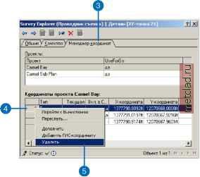 Главная --> Промиздат --> Геодезически определенные классы Изменение свойств проекта съемки В ArcCatalog вы можете изменить свойства проекта съемки. При внесении изменений, которые затрагивают вычисления, таких как замена методов внесения поправок, все вычисления в проекте становятся устаревшими. Повторная обработка сети вычислений проекта обновляет все вычисленные координаты геодезических точек, которые принадлежат проекту. Удаление геодезических объектов Удаление геодезического объекта зависит от того, используется он другими геодезическими объектами или нет. Например, нельзя удалить измерение, если оно участвует в вычислении -модуль Survey Analyst не допустит этой операции. Также, не допускается удаление геодезической точки до тех пор, пока не были удалены измерения, связанные с ней. Для удаления геодезических точек или измерений требуется выполнение операций в определенной последовательности; сначала вы должны удалить вычисление, затем измерения, и только тогда можно будет удалить геодезическую точку. ► Удаление импортированных координат 1. Выберите геодезическую точку на странице ведомостей проводника Survey Explorer, для которого вы хотите удалить координаты. 2. Нажмите правую клавишу мыши в крайнем правом столбце списка и выберите опцию Перейти к деталям. 3. Выберите закладку Менеджер координат на странице деталей точки. 4. Щелкните в крайнем левом столбце, чтобы выбрать импортированную координату, которую вы хотите удалить. 5. Нажмите правую клавишу мыши на строке координаты и выберите Удалить. ![]() Вы можете удалить наборы измерений, точки и вычисления, выбрав их на странице списка и нажав кнопку Удалить на панели инструментов Survey Explorer. Вы можете также удалять геодезические объекты по одному, путем нажатия кнопки Удалить при просмотре страницы деталей объекта. Удаление координат Чтобы удалить координату, вам необходимо находиться на странице деталей геодезической точки. Вместо использования кнопки Удалить, вы можете воспользоваться опцией контекстного меню списка координат. Удалять можно только импортированные координаты. Если вы удаляете текущую координату, средняя координата используется как текущая координата. Если вы удаляете последнюю координату, геодезическая точка становится пустой, а вычисления, которые зависят от точки, переводятся в состояние неполных. Если текущая координата меняется после того, как координата удалена, вычисления, которые используют геодезическую точку, становятся устаревшими. Удаление измерений вычислений и геодезических точек 1. Выберите опцию Список геодезических объектов из инструмента Карта на панели инструментов Редактор съемки. 2. Щелкните мышью и растяните рамку вокруг измерений и геодезических точек, которые вы хотите удалить. В проводник Survey Explorer будет добавлена новая страница списка, содержащая точки и измерения. 3. Щелкните в крайнем левом столбце первой строки, чтобы выбрать ее. 4. Удерживая клавишу Shift, щелкните в крайнем левом столбце последней строки списка. Будут выбраны все измерения и точки. 5. Нажмите правую клавишу мыши в крайнем левом столбце и выберите опцию Перейти к вычислениям. ► ![]() Survey Explorer (Проводник съемки) Список с карты [ ![]() Перейти к геодезическим точкам Перейти к Измерениям Экспортировать геодезические данные... Перейти к деталям Удаление геодезических 
