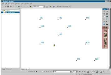 В данном примере мы будем интерполировать пока неизвестное значение высоты для точки с координатами x = 2.75, y=2.75 (на рисунке справа точка обозначена желтым цветом). Пространственное распределение опорных точек, их значения и искомая точка показаны в документе ArcMap, изображение которого приведено ниже. ![]() На первых двух панелях Мастера операций геостатистики, вы определяете набор данных, поле, значение которого вы интерполируете, и метод кригинга (в данном примере будет использован метод ординарного кригинга). Третья панель содержит диалог моделирования вариограммы. На этом этапе наша цель состоит в том, чтобы подобрать модель для эмпирической варио-граммы. На рисунке на стр. 73 приведен список возможных моделей. В предыдущем примере для подбора была использована простая прямая линия, но как вы видите, существует и много других возможностей. Каждая из моделей несколько отличается одна от другой, поэтому у вас есть возможность выбрать лучшую. Более подробную информацию по используемым моделям вы можете найти в Главе 7, Использование аналитических инструментов при построении поверхностей.