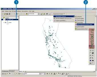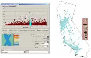 Главная --> Промиздат --> Интерполирование поверхности Изучение пространственной автокорреляции и вариации по направлениям Исследуя данные, вы получаете представление о пространственной корреляции между измеренными значениями. Такое понимание может бпть использовано для принятия более обоснован-нгх решений при выборе моделей при вхполнении пространственной интерполяции. Пространственная автокорреляция Вы можете исследовать пространственную корреляцию, которая существует в ваших даннгх, путем изучения различнхх пар опор-нгх точек. Облако вариограммы образуется при нанесении на график расстояний между двумя точками и величины половины квадрата разности между значениями в этих точках. Расстояние между точками откладывается по оси x, а половина квадрата разности значений точек - по оси y. Каждая точка на вариограмме соответствует паре опорнгх точек, а не индивидуальной точке на карте. Если данные являются пространственно зависимыми, пары точек, расположеннгх близко друг от друга (в начале оси x) должны иметь меньшие значения квадрата разности (располагаться в нижней части оси y). По мере того, как точки удаляются друг от друга (перемещение вправо по оси x), в целом, величина квадрата разности должна расти (перемещение вверх по оси y). Часто существует некое расстояние, за пределами которого квадрат разности остается примерно постояннхм. Считается, что точки, удаленные друг от друга на расстояние, большее этого некоего расстояния, не коррелируют друг с другом. Основным допущением для геостатистических методов является предположение, что любые две пары точек, расположенных на одинаковом расстоянии и в одинаковом направлении друг от друга, должны иметь похожие значения квадрата разности. Такая взаимосвязь носит название стационарности (см. Главу 3, Принципе! геостатистического анализа, и Главу 7, Использование аналитических инструментов при построении поверхностей). Пространственная корреляция может зависеть только от расстояния между двумя точками, что носит название изотропии. Одна- ко, возможно, что то же самое значение корреляции могут иметь точки, удаленные друг от друга на другое расстояние или точки, расположеннхе по-другому относительно друг друга в пространстве. Однако в действительности, может случиться так, что объекты, удаленные друг от друга на значительное расстояние в одном направлении, будут больше похожи между собой, чем объекты, расположенные ближе друг к другу в другом направлении. Такое влияние по направлениям видно на вариограммах и диаграммах ковариации и носит название анизотропии. Важно исследовать анизотропию, поскольку если вы обнаружите присутствие влияния по направлениям в корреляции, вы можете учесть их в моделях вариограммы и ковариации. Это, в свою очередь, влияет на геостатистический метод интерполяции. Исследование пространственной структуры с помощью инструмента Облако Вариограммы/ ковариации Инструмент Облако вариограммы/ковариации может бпть использован для изучения корреляции ваших данных. Рассмотрим набор даннгх со значениями концентрации озона. На следующем рисунке обратите внимание, что вы можете выбрать все пары точек, которые находятся на определенном расстоянии друг от друга, выделив их на вариограмме. ![]() Определение влияния по направлениям с помощью инструмента 