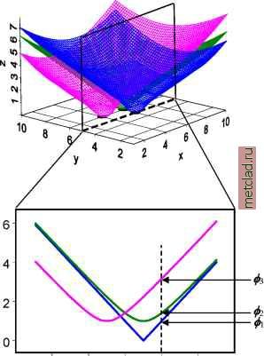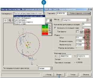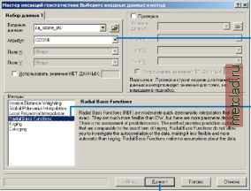 Главная --> Промиздат --> Интерполирование поверхности В отличие от метода взвешеннгх расстояний, функции RBF могут давать значения выше максимальных и ниже минимальных измеренных значений (см. нижний разрез на рисунке на стр.126). Оптимальные параметры функций определяются так же, как и для метода взвешенной интерполяции и локальных полиномов -с использованием перекрестной проверки (см. раздел этой главы, посвященный методу взвешенных расстояний). Когда использовать радиальные базисные функции Радиальные базисные функции используются для построения сглаженных поверхностей для большого количества опорных точек. Функции дают хорошие результаты для плавно меняющихся поверхностей, таких как рельеф. Эти методы не подходят в тех случаях, когда на поверхности происходит резкое изменение значений на коротком расстоянии по горизонтали и/или в тех случаях, когда вы предполагаете, что в исходнхх данных могут быть ошибки или неточности. Теоретические основы использования радиальных базисных функций В модуле Geostatistical Analyst радиальные базисные функции формируются над каждой опорной точкой. РБФ - это функция, которая меняется с расстоянием. Например, на следующем рисунке показаны три точки, и для каждой из них функция РБФ показана своим цветом. ![]() 1 3 5 7 9 В данном примере, радиальная базисная функция - просто расстояние от каждой точки, поэтому над каждой точкой она образует перевернутый конус. Если вы посмотрите на сечение плоскости x,z для значения y = 5 (второй рисунок на предыдущей странице), вы увидите разрез каждой из приведенных РБФ. Теперь предположим, что вам надо найти значение функции для точки y = 5, x = 7. Значение каждой из рассматриваемгх функций RBF в искомой точке может быть определено по графику, показанному на рисунке, (значения обозначены буквами/, f2 и f3) и зависит от расстояния до каждой из точек. Интерполятор образуется путем нахождения взвешенного среднего wf + wf + Вопрос заключается в том, как определить эти веса? Ведь вы совсем не использовали значения данных! Веса w, w2, w3, и так далее, должны удовлетворять следующему условию: если искомая точка будет помещена в точку с измеренным значением, значение даннгх будет проинтерполировано точно. Это приводит к образованию системы из N уравнений с N неизвестными, для которой могут быть найдены однозначные решения. Таким образом, поверхность проходит через опорные точки, то есть интерполятор является жестким. Функция RBF, приведенная выше, является особым случаем мультиквадриков. В модуле Geostatistical Analyst можно также использовать другие функции РБФ, такие как полностью регуляризованный сплайн, плоский сплайн, сплайн с натяжением, и обратные мультиквад-рики. Часто разница между ними невелика, но у вас могут бпть причины для выбора одной из них, либо вы можете попробовать использовать несколько функций, а затем для выбора окончательной применить перекрестную проверку. Каждая функция РБФ имеет параметр, который контролирует сглаживание поверхности. Для всех методов, за исключением обратнгх мультиквадриков, чем выше значение параметра, тем выше сглаживание поверхности; обратное утверждение верно для функции обратнгх муль-тиквадриков. Создание карты с использованием интерполяции на основе радиальных базисных функций Функции РБФ - жесткие интерполяторы, которые строят сглаженные поверхнос