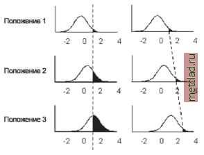 * Требует многомерного нормального распределения + Требует парного двумерного нормального распределения В таком случае, искомое значение будет находиться в центре каждой кривой, и можно построить карту проинтерполированных значений для всей поверхности. Рассмотрим три левхх рисунка. Вероятность того, что значение в искомой точке превысит пороговое значение, к примеру, равное 1, равна площади под кривой справа от пунктирной линии. Распределение проин-терполированнхх значений меняется с добавлением каждой точки. Таким образом, сохраняя пороговое значение постоянным,