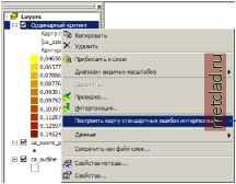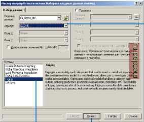 Главная --> Промиздат --> Интерполирование поверхности Создание карты с использованием ординарного кригинга Используйте ординарный кри-гинг для создания карт проинтер-полированных значений, квантилей, вероятности и карт стандартных ошибок. Он учтет неизвестное постоянное значение. Данные, полученные в опорных точках, должны относиться к непрерывному явлению. Подсказка Важные параметры Соответствующее преобразование, возможное вычитание тренда из поверхности, модели вари-ограммы/ковариации и область поиска соседства. Подсказка Использование файла базы данных вместо точечного слоя В диалоге Выберите входные данные и метод вместо слоя ArcMap может быть выбран файл базы данных. Для этого надо нажать кнопку Пролистать и выбрать соответствующий файл из базы данных. См. также Для дополнительной информации о преобразованиях, вычитании тренда, определении параметров в диалогах Моделирование вариограм-мы/ковариации и Поиск соседства, а также для изучения диалога Перекрестная проверка, обратитесь кГлаве 7, Использованиеаналитических инструментов при построении поверхностей. Создание карты проинтерполированных значений 1. В таблице содержания ArcMap выберите точечный слой, для которого вы хотите выполнить интерполяцию по методу ординарного кригинга. 2. Запустите модуль Geostatistical Analyst. 3. В окне Атрибут выберите показатель, для которого вы хотите выполнить интерполяцию по методу ординарного кри-гинга. 4. Из списка методов выберите Кригинг. 5. Нажмите Далее. 6. Из меню Ординарный кри-гинг выберите опцию Интерполяция. 7. Нажмите Далее. 8. В диалоге Моделирование вариограммы/ковариации задайте требуемые параметры и нажмите Далее. 9. В диалоге Поиск соседства задайте требуемые параметры поиска и нажмите Далее. 10. В диалоге Перекрестная проверка изучите полученные результаты и нажмите Готово. 11. В диалоге с информацией о результирующем слое нажмите OK. ![]() ![]() Создание учебного и тестового наборов данных При выполнении проверки, используются два набора данные: учебный набор данных и тестовый набор данных. Учебный набор данных содержит опорные точки, по которым будет выполняться интерполяция. Тестовый набор данных будет использован для проверки вычислений. Учебный набор данных вводится как Набор данных 1, а тестовый набор данных - как Проверочный набор данных. См. раздел Выполнение проверки для геостатистического слоя, созданного из поднабора данных в Главе 9 для получения дополнительной информации о создании поднабо-ров данных. Подсказка Использование проверки Убедитесь, что учебный набор данных содержит достаточное для точного представления поверхности количество опорных точек. Если учебный набор слишком мал, экстремальные значения данных могут сместить параметры модели и исказить полученные результаты. Создание карты стандартных ошибок интерполяции 1. В таблице содержания ArcMap нажмите правую клавишу мыши на поверхности проинтерполирован-ных значений, построенной с использованием ординарного кри-гинга, и из контекстного меню выберите опцию Построить карту стандартных ошибок интерполяции. ![]() Создание карты проинтерполированных значений с использованием проверки 1. В таблице содержания ArcMap выберите точечный слой, для которого вы хотите выполнить интерполяцию по методу ординарного кригинга. 2. Запустите модуль Geostatistical Analyst. 3. В о