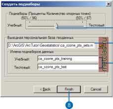 Главная --> Промиздат --> Интерполирование поверхности Подсказка Выбор точек Когда в таблице результатов выбрана строка, точка на графике выделяется цветом. Для сортировки значений выберите столбец. Это поможет найти определенные точки на графике. Изучение полученной модели 1. В диалоге Перекрестная проверка выберите одну из закладок Проинтерполированные значения, Ошибка, Нормированная ошибка, или График КК в зависимости от метода, который вы хотите использовать для просмотра результатов. ![]() Выбор определенной точки 1. В диалоге Перекрестная проверка в таблице, данной в правой нижней части диалога, выберите строку, соответствующую интересующей вас точке. Когда строка выбрана, точка выделяется цветом на диаграмме в верхней части диалога. ![]() перекрестной проверки для оценки выбранных параметров Перекрестная проверка позволяет вам определить насколько хороша ваша модель. Ваша цель - получить нормированное среднее ошибки вычислений, примерно равное 0, небольшие среднеквадратичные ошибки интерполяции, среднюю стандартную ошибку близкую к среднеквадратичным ошибкам интерполяции, и нормированные среднеквадратичные ошибки интерполяции, примерно равные 1. Точки должны быть расположены как можно ближе к серой пунктирной линии. Обратите внимание на точки, которые сильно отклоняются от линии. Просмотр всех строк и столбцов Используйте линейки прокрутки для просмотра всех строк и столбцов таблицы. Подсказка Просмотр сохраненной таблицы Чтобы просмотреть сохраненную в файле таблицу, выберите Добавить на стандартной панели инструментов, перейдите к базе данных, дважды щелкните по иконке, а затем добавьте таблицы. В таблице содержания ArcMap выберите таблицу и, нажав правую клавишу мыши, перейдите к опции Открыть. Сохранение статистики перекрестной проверки в файл 1. Нажмите кнопку Сохранить результаты перекрестной проверки. 2. Перейдите к папке на диске, в которой вы хотите сохранить набор данных. 3. Наберите название набора данных. 4. Выберите тип набора данных. 5. Нажмите Сохранить. ![]() ![]() Оценка протокола решений с использованием проверки Проверка позволяет оценить полученные вами результаты интерполяции. Ваша цель - получить нормированное среднее ошибок вычислений, примерно равное 0, небольшие среднеквадратичные ошибки вычислений, средние стандартные ошибки около среднеквадратичных ошибок вычислений, и нормированные среднеквадратичные ошибки интерполяции, примерно равные 1. Точки должны быть расположены как можно ближе к серой пунктирной линии. Обратите внимание на точки, которые сильно отклоняются от линии. Подсказка Разделение набора данных на тестовый и учебный поднаборы Установите движок посередине, чтобы разбить данные примерно поровну между тестовым и учебным набором. См. также См. раздел Выполнение перекрестной проверки и проверки для оценки выбранных параметров (предваряющего данные упражнения) для сравнения понятий проверки и перекрестной проверки. Создание поднаборов данных для использования их в проверке модели 1. Добавьте набор данных, для которого вы хотите создать поднаборы, в ArcMap. 2. Выберите опцию Создать под-наборы данных. 3. Из списка выберите набор данных, для которого вы хотите создать поднабор. 4. Нажмите Далее. 5. Необязательный шаг: измените местоположение результирующего файла базы геоданных 