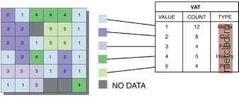 Главная --> Промиздат --> Координатное пространство Присвоение атрибутов растровому набору данных Значение, связанное с ячейкой - это идентификатор, определяющий, к какому классу, группе, категории или элементу она относится. Значение - это число, либо целое, либо с плавающей запятой. Ячейки с одинаковым значением относятся к одной зоне. Ячейки одной зон1 не обязательно должны бпть соединен!. При использовании целочисленного значения часто оно является кодом для более сложной идентификации. Например, 4 в растровом наборе землепользования может означать участки жилхх строений, принадлежащих одной семье. Со значением 4 может бь связано множество атрибутов, например, коммерческая стоимость, количество жителей или код переписи населения. Управление этими дополнительными атрибутами осуществляется либо вручную пользователем, либо реляционной базой данных. Обхчно существует отношение один-ко-многим между значениями ячеек (кодами) и числом ячеек, которым присвоен этот код. Это значит, что может бпть 400 ячеек со значением 4 (жилые дома отдельнхх семей) и 150 ячеек со значением 5 (коммерческое использование земли) в растровом наборе даннхх землепользования. Код будет записан много раз, по одному разу для каждой ячейки из этой категории (или меньше, в зависимости от технологии хранения данных), но атрибуты, связанные с этим кодом, будут записаны только один раз. Это позволяет экономить память и облегчает обновление данных. ![]() набором данных. Если у вас есть набор полигональных объектов, в котором записан код землепользования и имя владельца для каждого участка в городе, вы можете использовать любой из этих атрибутов. Если вы используете код землепользования, вы сможете задавать такие вопросы, как Где находятся все сель-скохозяйственнхе земли, доступные для строительства? Однако, вы не сможете добавить (присоединить) к растровому набору данных атрибут владельца, т.к. это будет отношение многие-к-одному . Это означает, что у участков, например, зоны лесов может быть много владельцев. Если вы используете имя владельца, вы сможете задавать такие вопросы, как Где участки, которыми владеет Фред Смит? Вы сможете также привязать тип землепользования из реляционной базы данных, т.к. у каждого участка будет один тип землепользования. Эта логика неприменима, если один владелец имеет несколько участков с разным типом землепользования. В этом случае вы можете использовать при преобразовании идентификатор участка или какую-нибудь другую уникальную характеристику. При работе с непрерывными данными обычно каждая ячейка имеет уникальное значение, и с ним не связаны дополнительные атрибуты, поэтому привязывать новые атрибуты не требуется. В этом случае отношение многие-к-одному не возникает. При создании растрового набора даннхх значение и уровень группирования должны соответствовать типу анализа, который вы предполагаете выполнить. Разделить ли значения уклона на пять категорий-от 0 до 10 процентов, от 11 до 20, от 21 до 30, от 31 до 40 и от 50 и выше-или на группе! с размером интервала только в два процента (от 0 до 2 процентов, от 3 до 4 и т.д.) зависит от степени подробности данных, необходимой для будущего анализа. Если вы не уверены, следует выбрать более подробный вариант. Сгруппировать затем данные в меньшее число категорий легче, чем разделить категории на бо