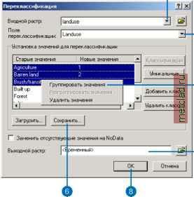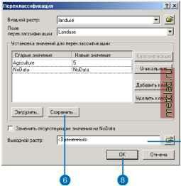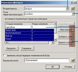 Главная --> Промиздат --> Координатное пространство Переклассификация Что такое переклассификация? Переклассификация означает просто замену входных значений ячеек новыми выходными значениями. Входные данные могут быть в любом поддерживаемом растровом формате. Если вы имеете дело с многозональным растром, в переклассификации будет использована первая полоса. Зачем переклассифицировать данные? Существует множество различнхх целей переклассификации даннхх. Вот наиболее распространенные из них: Замена значений на основании новой информации Группировка значений Переклассификация значений по общей шкале (например, при анализе пригодности или создании растра стоимости для использования функции Расстояние с весом стоимости Замена определеннгх значений на Нет даннгх или замена Нет даннгх на действительные значения. Замена значений на основе новой информации Переклассификацию полезно использовать, когда вы хотите заменить значения во входном растре новыми значениями. Это может потребоваться, если вы выяснили, что значение одной или нескольких ячеек в действительности должно бпть другим, например, если изменился тип землепользования. Группировка значений Вам может потребоваться упростить информацию в растре. Например, вы можете объединить различные типы лесов в один класс лесов. Переклассификация значений в наборе растров по единой шкале Другая причина для преклассификации - присвоение растру значений предпочтительности, чувствительности, приоритета или другого аналогичного критерия. Эту операцию можно выполнить с одним растром (растру типов землепользования можно присвоить значения 1-10, отражающие вероятность эрозии), или с несколькими растрами, чтобы привести их к общей шкале значений. Например, при поиске склонов, на которых наиболее велика опасность появления лавины, исходными данными должны быть уклон, тип почв и растительность. Каждхй из этих растров можно переклассифицировать по шкале 1-10 в зависимости подверженности каждого атрибута каждого растра образованию лавин (Например, самым крутым склонам в растре уклона должно быть присвоено значение 10, поскольку они наиболее подвержены возникновению лавин). Подробнее модель пригодности рассмотрена в Главе 2 Поиск места для новой школы в г.Стоув, штат Вермонт, США . Замена определеннгх значений на нет данн1х или замена Нет даннех на значение Иногда вам нужно исключить определенные данные из анализа, например, если на некоторые типы почв (например, на болота) наложены ограничения, не позволяющие вести на них строительство. В таких случаях вы можете заменить эти значения на Нет данных , чтобы исключить их из дальнейшего анализа. В других случаях может потребоваться заменить Нет даннхх на значение, например, если появились данные для ячеек, ранее помеченных, как Нет даннхх . Переклассификаиия данных Диалоговое окно Переклассификация позволяет вам модифицировать значения входного растра и сохранить изменения в новом выходном растре. Для этого может быть много разных причин, например, замена значений на основании новой информации, группировка значений, переклассификация по общей шкале (например, для использования в анализе пригодности), перевод опреде-леннгх значений в Нет даннгх или присвоение реальных значений вместо Нет данных . Кнопка Загрузить позволяет