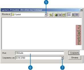 ![]() 2. Щелкните на стрелке вниз в окне Входная поверхность и выберите elevation. Оставьте значения по умолчанию для других параметров. 3. Нажмите OK в окне Отмывка. Результат функции отмывки рельефа будет добавлен к кар- те в качестве нового слоя. ![]() Все результаты функций анализа - временные. Если вы хотите сохранить результат для дальнейшего использования, вы должны сделать набор даннгх постоянным. 4. Щелкните правой кнопкой на созданном слое Отмывка рельефа и выберите Сделать постоянным. 5. Перейдите в созданную на локальном диске рабочую папку (C:\Spatial). 6. Наберите Hillshade в текстовом окошке Имя. 7. Щелкните на стрелке вниз в окне Сохранить как и выберите ESRI GRID. 8. Нажмите Сохранить. Примечание: Копия отмывки рельефа есть в ArcGIS\ArcTutor\Spatial\Results\Ex1\Hillshade на диске с учебными данными. ![]() ![]() 3-©