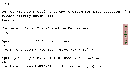 Главная --> Промиздат --> Map principle ![]() Do you accept this region? (y/n) [y] > у LOCATION <spearfishNAD83> created! Hit RETURN -> If everything is correct, type y and RETURN and you will get back to the startup screen. Type <ESC><ENTER> again and you will get the message that your MAPSET does not exist yet (note that the MAPSET PERMANENT was created automatically): Mapset <<userl>> is not available Mapsets in location <> (+)PERMANENT note: you only have access to mapsets marked with {+) Would you like to create < userl > as a new mapset? (y/n) у Type y and your new LOCATION with your MAPSET are created and GRASS prompt appears. You are now working in GRASS. You can check the definition of your LOCATION by running: ![]() which gives you the projection, coordinate system and units information that you have defined as well as the minimum and maximum coordinates and resolution in the LOCATION coordinate system with the flag -p or in geographic coordinates with the flag -l. Now you can start working on your project, by importing some data as explained in the chapters about raster, vector and site data processing. 3.2.3 State Plane As we have mentioned, the dialog used for the LOCATION definitions will vary depending on the coordinate system. We will illustrate it by the following example, where we use the State Plane Coordinate System. First we need to find out the coordinates of our study region as well as the ellipsoid and datum information (e.g., from the metadata of the file that we plan to import). Then we can start GRASS, provide the name of the new LOCATION, in our example, wake-spm and MAPSET, e.g., userl. Then type <ESC><ENTER> and after going through the previously described steps, you will be prompted for coordinate system. Select D for other and proceed as follows: Please specify the coordinate system for location <spearfishSPF> A X, у В Latitude-Longitude С UTM D Other Projection RETURN to cancel > D [. . .] Please enter a one line description for location <spearfishSPF> > Spearfish State Plane Feet NAD27 Please specify projection name Enter list for the list of available projections Hit RETURN to cancel request > list 11 - Lat/Lon utm - Universe Transverse Mercator stp State Plane aea - Albers Equal Area [...] Based on a list of supported projections, select stp for State Plane and then we continue by providing the rest of the parameters similarly, using list to get the supported options and then selecting the one that applies to our case (we show only the question and answer here, State FIPS code for South Dakota is 46, County FIPS code for Lawrence county is 81): ![]() Specify State Plane 1927 or 1983 Enter 27 or 83 Hit RETURN to cancel request >27 Specify the correct units to use: Enter the corresponding number 1. US Survey Foot (Default for State Plane 1927) 2. International Foot 3. Meter >1 After providing the units you will get to the DEFINE THE DEFAULT REGION screen (see our previous example). Now provide the coordinates of the north, south, west and east edge of your project area (in our case N: 271680, S: 195240, W: 977640, E: 1068000) and a suitable resolution (for example 30 m, remember, that you may change it for your work any time using g.region): projection: 2 (State Plane) zone: 0 datum: nad2 7 ellipsoid: a=6378206.4 es=0.006768657997291094 north: 271680 south: 195240 west: 977640 east: 1068000 e-w res: n-s res: 30 30 total rows: total cols: 2548 3012 total cells: 7,674,576 Do you accept this region? (y/n) [y] > у After approving your region parameters and new MAPSET creations (see the previous example) you will get the GRASS prompt and you can start working with your Spearfish data in State Plane coordinate system. 3.2.4 Non-georeferenced xy coordinate system If you need to work with non-georeferenced data or you do not know the parameters of your coordinate system, or your coordinate system is not supported by GRASS, you can define a LOCATION in a general, non-georeferenced coordinate system xy.
