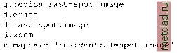 Главная --> Промиздат --> Map principle ![]() The new raster map residential contains only the zoomed subset of spot.image. You can look at it by running: d. erase d.rast residential When zooming out (d.zoom, middle mouse button, right to quit), you will realize that the image residential contains only the desired portion of the source, this area is surrounded by no-data (NULL) raster cells. Generating map subsets. If you have a large raster map, but you want to work only on a small subset of that area, the subset of interest can be selected and stored into a separate map. This will save you processing time, especially when you want to try a more complex calculation before applying it to the full map. GRASS raster computations are always limited to the current region at current resolution. After defining the area of interest with g.region or d.zoom, you can use the module r.mapcalc to extract the map portion into a new map: r.mapcalc newmap=oldmap Through this simple expression the map portion defined by the current region is saved as newmap, copying the cell values from the larger original map oldmap. As an example, let us copy the residential area in the north-west of the Spearfish area from the SPOT satellite image. We can use g.region to first adjust the current region settings (map boundaries and resolution) to a map, in this case the satellite image spot.image. After adjusting the region (you need to have open a GRASS monitor, if not, run d.mon x0) we display the SPOT image. Then we zoom into the residential area in the north-west of the satellite image. You will see the highway and, in blue shades, the residential area with the dense street network. This spot.image is a false color composite, so the colors are unnatural. For now, it is sufficient if you roughly zoom into the residential area. When zooming, always follow the mouse menu settings explained in the terminal window. Now we can extract the residential map through copying it from the base image (d.erase is required to send the new boundary coordinates to the GRASS monitor): This will display the data description, boundary coordinates, and data range. If desired, you can even email this information to yourself or to someone else: r.info residential mail -s residential map recip@domain.org Raster map timestamps. Because a lot of mapping and monitoring produces time series of spatial data, it is important to store the relevant temporal information. GRASS allows us to store it separately from the history file using the module r.timestamp. This command has two modes of operation. If no date argument is supplied, then the current timestamp for the raster map is printed. If a date argument is specified, then the timestamp for the raster map is set to the specified date(s). An example for an absolute timestamp: 5.1.4 Managing metadata of raster maps Information about the data source, accuracy, producer, date of mapping or image acquisition, date of map production, and eventual modifications, is called metadata ( data describing data ). Data documentation is crucial for GIS work, for evaluation of data quality and suitability for a given task. This is particularly important for long-term projects, or where GIS data are shared with other users. GRASS offers the option of maintaining a history file for documentation of a map. Many analytical modules save their calculation steps into the history file automatically. But it may be necessary to store additional information. The map history can be modified using the command: r.support in interactive mode, i.e. starting it without any parameter. After entering the map name you may proceed with <ENTER> to the question: Edit the history file for [map]? . Confirming with y an input screen showing the metadata for this map opens up. Especially the fields for Data source and Data Description should be filled in. For example, we may want to edit the metadata for the recently created map residential (see above). Start r.support, select the map residential and proceed to the history screen. You can see that map date, title, creator, a description containing the map creating method generated by r.mapcalc and a few more entries are already stored there. You may fill the field data source with SPOT I MSS false color composite 5/27/89 . With <ESC><ENTER> you reach the next screen where you may apply further comments. Another <ESC><ENTER> takes you back to the questionnaire mode of r.support; you can skip the rest of the questions with <ENTER> and leave the module. To display the metadata of a raster map, use: r.info residential 5.1.5 Reclassication of raster maps Reclassification of a raster map creates a new map based on the transformation of existing categories in the original map to a new set of categories. Usually, ranges of categories are grouped into a new class using the module r.reclass. Those category numbers which are not explicitly reclassified to a new value will be reclassified to NULL. Before using r.reclass you need to know: transformation rules (reclass table) describing which old categories will be assigned into which new categories; optionally, names for the new categories (category labels). We recommend using the module on the command line and storing the reclass table in a file. This is convenient in the case that additional modification of the reclass table is required. The file containing the reclass rules is read from standard input (i.e., from the keyboard, redirected from a file, or piped through another program). The following examples illustrate the concept. First, we will reclassify the raster map roads, which includes five categories (you may check that with r.report roads). The new map will include class 1 (good quality) which will be assigned to the categories 1, 2 and 3 in the input raster, and the class 2 (poor quality) which will include the categories 4 and 5. We store the required reclass rules into a text file roads.recl: 12 3=1 good quality 4 5 =2