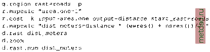Главная --> Промиздат --> Map principle find out which fire brigade is closer in terms of distance and potential speed to reach the fire. The result depends on the parameters used to prepare the input maps. Using r.what is probably the best idea, as we can directly enter the above coordinates of the fire brigades: r.what roads.cost east north=590772.6,4926787.3 590772.6 I 492 6787.3 I I 7.8173332214 r.what roads.cost east north=608297.8, 4924206 . 0 6082 97.814 92 4206.01 17.7000617981 The result tells us that the fire brigade in Whitewood can reach the wildfire slightly faster (costs are lower) according to our definitions. Of course we are also interested in getting the optimal route through the route network. The optimal routing module r.drain, which analyzes the cost surface, needs the coordinates of the fire brigades. Additionally we specify the flag -n to count the number of cells along the path (a simple indicator for the distance): r.drain -n in=roads.cost out=spear.route\ coord=590772.6,4 92 678 7.3 d.rast spear.route r.drain -n in=roads.cost out=white.route\ coord=608297.8,4 92420 6.0 d.rast white.route d.vect roads col=red This delivers two path maps with accumulated numbers of cells, indicating the distance. Precise distance measure could be done by converting the raster lines to vector lines and generating a related line length report. Note that r.cost only calculates along non-NULL values. In case that a starting point falls into a NULL area in the input map, you have to replace the NULL values with something meaningful for that application (in the above example a minimum speed). Either use r.mapcalc with an isnull () function to replace the NULL values, especially when you want to replace the NULLs with another underlying map, or use the r.null module when replacing the NULLs with a single value. In our example we did not take into account that Deadwood, the closest town to our wildfire, is located south-east of the area. Another drawback is that some roads that appear connected on the raster map do not cross in reality, for example, if there is an overpass over the highway. Computing a distance map. To compute the shortest distance of each pixel from raster lines, such as determining the shortest distances of households to the nearby road, you can use cost surfaces with cost value 1. The calculation is done with r.cost as follows (example for Spearfish region): ![]() The map area.one is used as cost information, for calculating distances we use costs of 1. The distances are calculated from the roads network. Note that d.rast.num which prints the cell values as text labels into raster cells, only works when zooming into a map portion. The resulting distance map carries distance information in number of cells to the closest road. To calculate a real distance map (in meters), the cell values have to be multiplied with the cell resolution. In our example, we assume square pixels with identical resolution in north-south and west-east directions. 5.4.5 DEM and watershed analysis Topographic analysis (or surface analysis) provides a wide range of parameters that describe the geometrical properties of the studied surface, such as: a) summary parameters and profiles, for example volumes, surface areas, roughness, fractal dimension; b) point parameters describing the geometry of the surface in the given point such as slope, aspect and different types of curvatures; c) flow parameters based on integration along flowlines, such as slope length, upslope contributing area, watershed (basin), stream network; d) ray tracing parameters based on lines (rays) emitted from or towards the surface, such as line of sight, insolation. We will cover a subset of the above mentioned tasks in the following paragraphs. Slope, aspect and curvatures. The module r.slope.aspect generates raster map layers of slope, aspect, curvatures and partial derivatives from a raster map layer of true elevation values. The slope values are calculated per default in degrees, or you may change the units to percentage using the parameter format. In case you are working in a coordinate system that uses feet (or units other meter), the module automatically converts the horizontal distances to meters. You must use parameter zfactor to convert elevation to meters to obtain correct values of slope, curvatures and derivatives. The aspect values represent the direction of flow (they point downslope) measured in degrees from east, increasing counterclockwise: 90° is north, 180° is west, 270° is south and 360° is east. Additionally, you can calculate a profile curvature map (measured in the direction of the steepest slope) and a tangential curvature map (measured in the direction of the contour tangent). For exact definition of slope, aspect and curvatures see the equations in the Appendix B.3. Further explanation and applications of these parameters in relation to DEM quality assessment and modeling of processes is in Chapter 12. For general explanation of curvatures see, for example, Alexandrov et al., 1989 or Mitasova and Hofierka, 1993. The module computes topographic parameters based on approximation of the terrain surface by a second order polynomial. This leads to the computation of partial derivatives, needed for estimation of slope and aspect, as weighted averages of elevation differences in the 3x3 neighborhood of the given grid point (see Appendix B.3). The equations are also known as Horns formula (Horn, 1981). When applied to DEM represented by integer meters the aspect is biased in certain directions and reinterpolation to floating point DEM is recommended (see Section 12.1). For example, to compute slope, aspect and profile curvature using the elevation map in the Spearfish data set simply run: r.slope.aspect el=elevation.dem slope=slope asp=aspect\ pcurv=profcurv Find more application examples of this command in Chapter 12. Flow parameters and watersheds. Flow parameters are derived by flow-tr