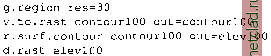 Главная --> Промиздат --> Map principle s.voronoi can be used in special cases when only the values assigned to contours should be in the resulting raster, leading to a discontinuous surface (see Figure 6.7a). It requires transformation to sites and further transformation of the voronoi polygons vector map to raster, as described in the Section 7.3.1; s.surf.idw is based on inverse distance weighted interpolation (IDW) and can be used after transforming the contours to sites (see Section 7.3.1 and Appendix B); v.surf.rst interpolates the raster directly from the vector data using the RST method: regularized spline with tension method (see Section 7.3.2 and Appendix B); r.surf.contour requires conversion of contours to raster lines and then linearly interpolates between contour lines. The interpolation method should be selected based on the application. As with all transformations to raster, we have to define the GRID RESOLUTION for the new raster map with g.region before applying the interpolation module. RST interpolation method. The RST (Regularized Spline with Tension) method is explained in detail in Section 7.3. It has been adapted for direct input of vector isoline maps in the module v.surf.rst. Internally, all lines are converted to sites and interpolated using the same RST method as in s.surf.rst. The module provides numerous parameters, which you can use to tune the behavior of the interpolation function, calculate slope, aspect, and curvatures, as well as compute deviation and quadtree maps. For details please refer to the manual page; here we show a simple example (Figure 6.7c) We will interpolate a DEM using the vector contour map generated the previous section: g.region res=30 v.surf.rst contourlOO elev=elevlOO.rst & d.rast elevlOO.rst If elevation values are stored as category labels and not as category numbers, the flag -c has to be used. The module gives recommendations for optimizing the calculation depending on the input data, for example, by giving warnings about possible overshoots (interpolated values exceeding the range of given values over 15%) when an increase in tension and/or smoothing is needed. For further explanation of parameters and functionality of this module read the Section 7.3.2. A method to analyze the quality of interpolated maps is shown in Section 13.2.1. ![]() The module interpolates the elevation at a given cell from the uphill and downhill contour values by the true distance. To obtain good results it is important that the contour lines extend to the edge of the current region and there are no disjointed contour lines. Since a flood fill algorithm is used, running time grows exponentially with the distance between contour lines. Note that instead of digitizing, when the points defining the contour line were selected manually, most contours are nowadays generated automatically. Scanning of contours or their computation from a dense TIN or a raster leads to a very high density of points along the lines while there may be large areas between contours (especially in flat terrain) without any data. Such a representation of a surface with strongly heterogeneous spatial distribution of data points presents substantial challenge for most interpolation methods, which tend to create waves or steps along the isolines. Reducing the number of points on the lines (for example, by increasing the dmin parameter in v.surf.rst), adding points between the contours, and changing the interpolation parameters (e.g. lowering tension for v.surf.rst or increasing the number of points for IDW) helps to minimize the problem. When there are large areas with sparse contours, rectangular segments may become visible, especially in the aspect map. While the error in the elevations due to the segments is usually negligible, it is not acceptable for shaded maps (see Section 8.1.2). The problem can be eliminated using two step interpolation. First interpolate the surface using v.surf.rst. If segments are visible, generate additional points sparsely but homogeneously distributed over the elevation surface using r.random. Transform the contours to sites using v.to.sites and merge with the sites file generated by r.random, e.g. using UNIX command cat. Finally, interpolate this merged sites file using s.surf.rst. The surface should be without segments. Linear interpolation between contours. The module r.surf.contour requires the vector map to be converted to a raster lines map. The vector-to-raster conversion is done with v.to.rast. To interpolate the raster surface, run r.surf.contour with the name of the raster lines file and a name for the resulting raster surface. In our example (Figure 6.7d), we use the vector contour map generated in the previous section: Chapter 7 WORKING WITH SITE DATA Observed values or properties can be spatially referenced to a single point or, in GRASS terminology, a site. Site data represent either a discrete feature at a given scale, such as a city, an archaeological site or a hospital, or they are discrete samples of continuous fields such as data from climatic stations, measured elevation points, or bore-hole data. GRASS provides tools for management and analysis of sites map layers, as well as their transformation to vector or raster data. If the site data represent a continuous field, transformation to raster representation of this field is performed by spatial interpolation. 7.1. CREATING SITE DATA We have described the GRASS sites data format and various ways of importing it from external sources in Section 4.3. In this section, we describe the methods and tools for creating new GRASS sites map layers. One approach is to modify an ASCII file exported from a database or other source using a text editor or awk (see example Appendix A). The file then should be copied to the site lists/ directory in your MAPSET. If this directory does not exist, go to your MAPSET directory and create it using mkdir site lists/. 7.1.1 Digitizing site da