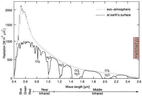 Главная --> Промиздат --> Map principle Chapter 9 SATELLITE IMAGE PROCESSING Remote sensing, as a rapidly advancing technology for gathering environmental data using a wide range of satellite platforms, plays a major role in spatio-temporal earth surface monitoring. Throughout this chapter we introduce the basic remote sensing methods and explain their use in GRASS. The tools for image processing and remote sensing applications will be illustrated using a SPOT-1 HRV (Haute Resolution Visible) and PAN (Panchromatic) image data set as well as a LANDSAT-TM7 scene available as an extension for the Spearfish data set. 9.1. REMOTE SENSING BASICS Before describing numerous methods implemented in GRASS in detail, we will explain basic concepts of satellite remote sensing. As this relatively short section cannot replace related textbooks, references will be given where appropriate. 9.1.1 Spectrum and remote sensing In principle, there are two different remote sensing approaches: the optical (passive) and the microwave (active) systems. Optical remote sensing is based on the measurements of radiation reflected from surfaces. It usually covers the visible (VIS) and infrared (IR) range of the spectrum. The reflected radiation in near (NIR) and middle infrared (MIR) spectrum behaves similarly to visible light, while thermal radiation (TIR) is surface emitted radiation. Longer wavelengths are in far infrared (FIR) range and in the important microwave range. See Figure 9.1 for a portion of the specttum. The optical region spans at wavelengths from 0.3-15 лп where energy can be collected through lenses. A subdivision of this optical region is the reflective region, ОЛ-Ъ.О /ит (Figure 9.1). The adjacent subdivision of the optical spectral region is the thermal spectral range which is between 3-15 /лп, where energy is primarily emitted from surfaces rather than reflected. Far infrared ranges from mi- crowaves from 1mm-1m. As opposed to optical systems, radar systems actively emit microwaves and measure the backscattered energy. The major advantage of radar is the relative independence from weather and solar illumination effects. In case of an overcast sky, the earth surface is hidden by clouds for optical satellites. However, radar satellites can continue to deliver usable images since microwaves pass through the cloud cover (this is of special interest in the tropics). Radar analysis is not covered in this book because it is fairly complex. For details please refer to the three microwave volumes by Ulaby, Moore and Fung, I98I, 1982 & I985, the book by Oliver and Quegan, I998, or other literature. Additional tutorials are available on the World Wide Web.1 Besides tools for optical data, GRASS also provides basic capabilities to process radar and thermal data. In this chapter we focus on images acquired by optical systems because they are widely used and their interpretation as well as data processing is easier than for radar data. Reflected radiation and atmospheric effects. Optical remote sensing systems are measuring sun energy reflected from earths surface. While the sun is emitting a full range spectrum with a special energy distribution, only part of the energy reaches the earths surface. The reason are various absorption and scattering processes within the atmosphere. Figure 9.I outlines the solar radiation on top of atmosphere and at earths surface. Before reflected solar energy reaches a sensor, it has passed the atmosphere twice at different angles. Correction of such atmospheric effects often requires image preprocessing. It is important to know that for some ranges of the spectrum, radiation cannot pass the atmosphere at all. Within these absorbed wavelengths optical remote sensing platforms are unable to receive reflected radiation from earth. Therefore, the spectral filters of satellite sensors are defined accordingly. Schowengerdt, I997, describes these issues at a greater detail. Remote sensing of the environment considers the sun energys reflection in the visible and infrared range of the spectrum. Depending on the material of the observed object, the amount of reflected radiation varies. The reflectance curves of three basic materials are shown in Figure 9.2. While water absorbs most radiation in the visible spectrum and all in near-infrared, the radiation reflection of unvegetated sandy soil increases from the visible spectrum to the infrared range. The curve for green vegetation is highly dependent on the contents of chlorophyll. With a small peak for green wavelengths, the overall amount of reflection in the visible spectrum is much lower than for the infrared, ![]() Figure 9.1. Distribution of solar radiation (reflective portion of the spectrum) on upper boundary of atmosphere and at earths surface with gaseous absorption (solar zenith angle 45°, curves as defined in 6S source code, Vermote et al., 1997) especially in the near-infrared. The curve depressions at higher wavelength depend on the water contents of the plant. In case of a plant disease or dormant stage the reflection in infrared is dramatically decreased. The different reflectance curves allow us to distinguish the observed objects by multispec-tral remote sensing. For more theoretical details please refer to Richards and Xiuping, 1999. 9.1.2 Satellite sensors The payload of the satellite platforms are usually multispectral systems with a narrow spectral range. Some systems are extended by one panchromatic channel which covers a large wavelength range, usually at a higher resolution than the multispectral channels. Figure 9.2 shows the spectral coverage of the LANDSAT-TM5 channels. While the satellite is overpassing the earths surface, the reflectance radiation is measured line-wise. All satellite sensors are collecting data at the same time, delivering a set of images where every image contains the reflection as it appeared in the related spectral range. Such a data set of geographically related