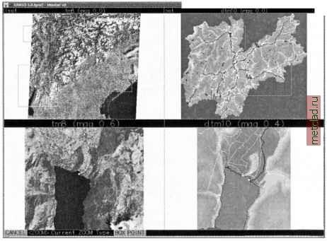 Главная --> Промиздат --> Map principle set can be directly imported into the target LOCATION and used for further analysis. If it is in a different coordinate system, the data set must be imported into its own LOCATION and projected to the target LOCATION with r.proj (see Section 3.3.2). It is important to check the geometrical accuracy with reference maps. Case 2: the image data set is not geocoded, but GCPs are present. When importing the data with r.in.gdal, existing GCPs are extracted into a GRASS POINTS file (used later by i.rectify). If the GCPs represent the four corner points, a Helmert (similarity) transformation can be performed to transform the data into a georeferenced LOCATION (first order polynomial transformation). However, as this linear transformation only stretches and rotates the image, it is not very accurate for satellite images which may also contain distortions within the image. Improvements can be achieved by adding more GCPs and using a higher order polynomial rectification method. As mentioned in the import section of this chapter, the extracted GCPs coordinates, which are usually provided as latitude-longitude coordinates, can optionally be projected on the fly to a target coordinate system. This will be explained in greater detail later. Case 3: the image data set is not geocoded, no GCPs are present. First, GCPs within the image and on a reference map have to be identified. GPS data can be used instead of the points on the map. The geocoding process in GRASS then requires three steps. Create a source LOCATION which contains the satellite data set. Then create a target LOCATION (usually projected) into which the raw data set will be rectified. This target LOCATION contains reference map(s) for GCPs identification. Finally, after a sufficient number of spatially accurate GCPs is identified, the rectification of the input image or image group from the source to the target LOCATION is performed. Ground control point identification. GRASS provides tools for on-screen identification of ground control points on digital maps and for assigning points from GPS measurements. Four types of image rectification are generally possible: image to image (staying in xy-coordinates), image to raster map (georef-erencing to raster map), image to vector map (georeferencing to vector map), and image to keyboard specified coordinates (referencing against known points such as GPS data). As mentioned above, when working with multi- or hyper-spectral data, all channels of interest should be assembled into an image group with i.group. As an example, we geocode the SPOT-1 HRV data as provided in the LOCATION imagery. First, we select the SPOT-1 HRV data in a group (the PAN image is shifted within the LOCATION imagery and has to be rectified in an extra procedure): LOCATION: imagery GROUP: spotmss MAPSET: markus Please mark a x by the files to be added in group [spotmss] MAPSET: PERMANENT gsl3.1 spot.p gsl4 .1 nhap.1 nhap.2 nhap.3 nhap.enh spot.comp x spot.ms.1 x spot.ms.2 x spot.ms.3 You can select a channel by writing an x; delete a selection by overwriting the X character with blank. Leave the selection screen with <ESC><ENTER> and confirm the selection. In the main menu, you can optionally specify a subgroup, which is required for some GRASS image processing tools. For our example, we can leave i.group with <ENTER>. Note that you can also use the module on the command line. Before starting the GCPs identification, the target LOCATION (in our case the spearfish) has to be specified with i.target: i.target group=spotmss location=spearfish mapset=userl For the graphical identification of ground control points, GRASS provides a few modules: i.points to reference to a raster map, i.vpoints to reference to a vector map, and i.pointsB (under development), which combines previous modules and i.ortho.photo. Also, ortho-image generation from satellite images will be possible when using i.pointsB with i.rectifyB by incorporating the elevation and a geometrical sensor model. For our SPOT-1 example, we use the module i.points to interactively define GCPs in the GRASS monitor. The GRASS monitor must be open and the The following screen appears; enter the image group name spotmss: LOCATION: imagery i.group MAPSET: markus This program edits imagery groups. You may add data layers to, or remove data layers from an imagery group. You may also create new groups Please enter the group to be created/modified GROUP: spotmss (list will show available groups) Leave the screen with <ESC><ENTER> and accept it with y. Now you reach a new screen where you can select the images: ![]() Figure 9.6. Geocoding of a satellite image to raster/vector reference maps with i.points3 i.points started. It queries for the image group; here, specify the recently created group spotmss. An image from the image group can now be selected for display in the upper left half of the GRASS monitor. Select a channel from the list to plot it. This may also be an additional color composite included in the image group. Using the PLOT RASTER menu and clicking into the right half of the monitor, a reference map from the target LOCATION can be displayed (for our example, choose the raster map roads). Ground control points can now be assigned. It is important to use the ZOOM function in both maps to achieve high accuracy. A GCP is set by clicking with mouse at a point, first in the source image, then at the related tie point in the target map. The selection needs to be confirmed and an accepted point pair is drawn in green color. For the first GCPs pair, you may start and zoom into a road intersection, both in the satellite image and the roads map (select ZOOM , then BOX , draw a box with the mouse). The zoomed image/map portions are shown in the lower half of the GRASS monitor (compare Figure 9.6). Remember from vector digitizing that useful points are located in the middle of road intersections, field corners, etc. Alternati