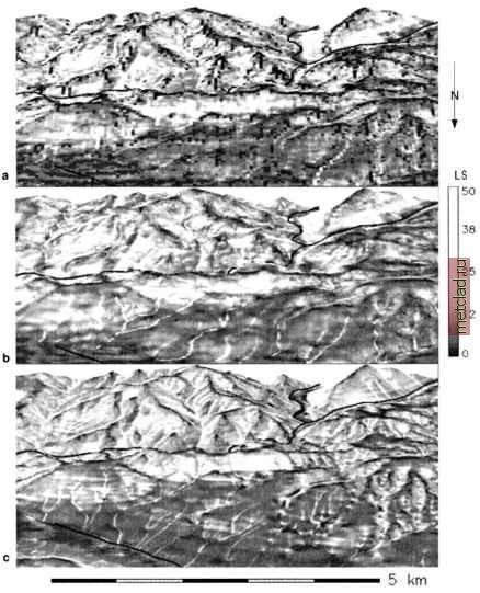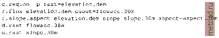 Главная --> Промиздат --> Map principle Chapter 12 USING GRASS: APPLICATION EXAMPLES In this chapter, we explain the practical use of GRASS using examples in the area of natural resources. First, we illustrate simple modeling using the Spearfish data set. More complex application is included in the section focused on land use management. To save space, we use the command line mode throughout this chapter; however, the same tasks can be performed by accessing the commands using the TclTk interface or an interactive mode (see Section 3.1.3). 12.1. WORKING WITH DIGITAL ELEVATION MODELS: EROSION RISK ASSESSMENT In this section, we will use topographic analysis and map algebra to find locations with high erosion rates. To compute simplified erosion risk maps, we can use the widely accepted Universal Soil Loss Equation (USLE), modified for complex terrain (see Mitasova et al., 2001). It is often referred to as USLE3D or the updated RUSLE3D. The general formulation for both USLE and RUSLE is defined as follows: A = RKLSCP (12.1) where A is average annual soil loss in ton/(acre.year)=0.2242kg/(m.year), R is rainfall factor in (hundreds of ft-tonf.in)/(acre.hr.year)=17.02 (MJ.mm)/(ha.hr.year), K is soil erodibility factor in (ton acre.hr)/(hundreds of acre ft-tonf.in)=0.1317(ton.ha.hr)/(ha.MJ.mm), LS is a dimensionless topographic (length-slope) factor, C is a dimensionless land cover factor, and P is a dimensionless prevention measures factor. The major difference between USLE and RUSLE is in the values of these factors and the methodology for their derivation (you can download the field-based RUSLE and its documentation from Internet1). USLE was originally designed for uniform planar fields with slope steepness and slope length estimated in the field. It has been shown that the standard form of the LS factor can be modified to better express the influence of complex terrain (Moore and Burch, 1986, Mitasova et al., 1996, Desmet and Govers, 1996, Moore and Wilson, 1992). The modified factor, representing topographic potential for erosion at a point on the hillslope, is a function of the upslope area per unit width and the slope angle: where U is the upslope area per unit width (measure of water flow) in meters {nP-/m), P is the slope angle in degree, 22.1 is the length of the standard USLE plot in meters and 0.09 = 9% = 5.15° is the slope of the standard USLE plot. The values of exponents range for m = 0.2 - 0.6 and n = 1.0 - 1.3, where the lower values are used for prevailing sheet flow and higher values for prevailing rill flow. When nothing is known about the type of flow, m = 0.4 and n = 1.3 are usually used (see RUSLE for Arc View2). We will derive the required parameters using the data available in our Spearfish data set. 12.1.1 Computation of the LS factor We start GRASS typing grass53 and select spearfish and userl for LOCATION and MAPSET. By running g.list rast we can see that we have some elevation data, as well as the soil and vegetation map layers that we need for estimation of erosion risk. First, we compute the LS factor using the older 30 m resolution DEM elevation.dem, as both upslope area and slope are derived from a DEM. To make sure that our data are not inappropriately resampled, we set the region to the one defined by the elevation map layer. We can then compute the flow accumulation and slope as follows: ![]() Note that r.flow creates a special non-linear color table for the flow accumulation map layer so that the spatial pattern of flow is visible both on the hillslopes, where the values are very low, and in the valleys, where flow accumulation can be several magnitudes higher. ![]() Figure 12.1. LS factor computed at a) 30 m resolution using the original Speafish integer DEM, b) 15 m resolution using the re-interpolated floating point DEM, c) 10 m resolution using the new USGS DEM from National Elevation Dataset. The center of this zoomed-in area is located at -103.68632, 44.42721 longitude, latitude. White areas have high topographic potential for erosion, dark grey areas are stable When computing the LS factor, we multiply the flow accumulation by the resolution to get the upslope contributing area per contour width (it is in fact the flowline density multiplied by cell area in divided by cell width in m) and calculate the Equation 12.2 using r.mapcalc:
