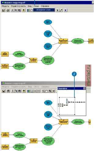 Главная --> Промиздат --> Построение моделей технологопроцесса рывно увеличивает или уменьшает изображение, когда левая кнопка мыши зажата, и мышь перемещается вперед или назад. Опция Пользовательский в меню Вид позволяет вам выполнять масштабирование в процентах, определенных пользователем. u Предварительно заданные уровни масштаба в меню Вид (25%, 50%, 100%, 200%, 400%) позволяют выполнить масштабирование с фиксированным процентом от действительного размера Чтобы избежать случая, когда вы теряетесь в большой модели, вы можете открыть Обзорное окно (окно Overview). Обзорное окно всегда отображает модель целиком. В Обзорном окне ваше текущее положение в модели отмечено прямоугольником. Когда вы передвигаетесь в окне ModelBuilder, этот прямоугольник тоже сдвигается параллельно с вами. Чтобы использовать Обзорное окно как инструмент масштабирования, щелкните и перетащите прямоугольник в Обзорном окне. Изображение в окне модели увеличивается до размеров области, перекрываемой прямоугольником. Вы можете щелкнуть и растянуть новый прямоугольник масштаба в ► Использование окна просмотра 1. Откройте меню Окно и выберите опцию Обзорное окно. 2. Перетаскивайте, уменьшайте или увеличивайте прямоугольник в Обзорном окне, чтобы выполнить масштабирование изображения или передвижение по модели, в области, перекрываемой прямоугольником. ![]() В окне отображения можно видеть увеличенное изображение участка, перекрываемого прямоугольником в Обзорном окне. Перетаскивание прямоугольника в Обзорном окне в новое положение сдвигает изображение модели. любой момент. Вы также можете изменить размер прямоугольника, щелкнув и растянув его за черные метки-манипуляторы. Чтобы использовать Обзорное окно как инструмент перемещения, щелкните внутри существующего прямоугольника в Обзорном окне и перетащите его в новое положение. Вы можете изменить размер Обзорного окна и переместить его за пределы окна ModelBuilder. Инструмент Переход позволяет вам передвигаться по технологическому процессу модели, от одного элемента к другому, либо вперед, либо назад. Это может быть полезно, если вы хотите пройти модель шаг за шагом, поэлементно. Чтобы перейти вперед, щелкните на начале соединительной линии. Чтобы перейти назад, щелкните на стрелке соединительной линии. Передвижение вперед по модели 1. Чтобы передвигаться по модели, воспользуйтесь инструментом Переход. 2. Чтобы перейти вперед, к следующему элементу, щелкните на начале соединительной линии. 3. Продолжите выполнять шаг 2, чтобы пройти вперед всю модель целиком. ![]() Передвижение назад по модели 1. Чтобы передвигаться по модели, воспользуйтесь инструментом Переход. 2. Чтобы вернуться назад, к предыдущему элементу, щелкните на стрелке соединительной линии. 3. Продолжите выполнять шаг 2, чтобы пройти назад всю модель целиком.