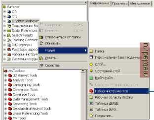 Главная --> Промиздат --> Построение моделей технологопроцесса Создание новых наборов инструментов Вы можете создавать новые наборы инструментов в окне ArcToolbox или в дереве ArcCatalog для хранения инструментов, которые вы хотите использовать. В окне ArcToolbox новые наборы инструментов указывают на место на диске, определенное по умолчанию: на место хранения папки Мои наборы инструментов в папке Наборы инструментов в дереве ArcCatalog. Наборы инструментов также могут быть созданы внутри существующих папок или баз геоданных напрямую в дереве ArcCatalog. После того, как вы создали новый набор инстру- Подсказка определение местоположения наборов инструментов Если вы не уверены в месте хранения набора инструментов, нажмите правую кнопку мыши на наборе инструментов и выберите Свойства, чтобы установить то место на диске, где был создан набор инструментов. См. также Обратитесь к Главе 5, Работа с группами инструментов и инструментами за информацией по добавлению инструментов в наборы инструментов и созданию новых инструментов внутри наборов инструментов. Создание нового набора инструментов в окне ArcToolbox 1. Нажмите правую кнопку мыши на папке ArcToolbox в окне ArcToolbox и выберите опцию Новый набор инструментов. В окне ArcToolbox появится иконка набора инструментов. ![]() ArcToolbox + 3D Analyst Tools Ф Analysis Tools Cartography Tools ф Conyerslon Tools ф Coyerage Tools ф Data Management Tools Ф Geocoding Tools ф Geostatistcal Analyst Tools ф Linear Referencing Tools ф Spatal Analyst Tools Spatal StatsOcs Tools ф.. = Создание нового набора инструментов в дереве ArcCatalog 1. Нажмите правую кнопку мыши на названии папки или базы геоданных, в которой вы хотите создать новый набор инструментов, перейдите на Новый, затем выберите опцию Набор инструментов. 2. Наберите новое имя для набора инструментов. 3. Нажмите Enter. ![]() ментов, добавьте его в окно ArcToolbox в виде иконки быстрого доступа и работайте с ним из этого окна. Это экономит время, необходимое на определение местоположения набора инструментов в дереве ArcCatalog, каждый раз, когда вы хотите воспользоваться инструментом. Папка Мои наборы инструментов входит в папку Наборы инструментов, расположенную в дереве ArcCatalog на корневом уровне. Или же, они могут быть созданы внутри окна ArcToolbox. Инструменты, созданные внутри окна ArcToolbox, отображаются в виде иконок быстрого доступа, которые позволяют перейти к этой папке. Вы можете изменить место хранения на диске папки Мои наборы инструментов, предлагаемое по умолчанию. Любые новые наборы инструментов, создаваемые вами непосредственно внутри папки Мои наборы инструментов или в окне ArcToolbox, будут храниться на диске в установленном вами месте. Подсказка Переустановка места хранения папки Мои наборы инструментов Чтобы поменять положение на диске папки Мои наборы инструментов на место хранения, предложенное по умолчанию, нажмите Переустановить в закладке Геообработка в диалоговом окне Опции, доступ к которому можно получить из меню Инструменты того приложения, в котором вы работаете. Изменение предлагаемого по умолчанию местоположения папки Мои наборы инструментов 1. В меню Инструменты выберите Опции. 2. Щелкните на закладке Геообработка. 3. Нажмите Обзор. 4. Перейдите к месту на диске, где вы бы хотели сохранить новые наборы инструментов, созданные внутри окна ArcToolbox или непосредственно внутри папки Мои наборы инструментов в дереве ArcCatalog. 5. Нажмите OK в диалоговом окне Поиск папки. 6. Нажмите OK. Вс
