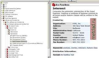 Главная --> Промиздат --> Построение моделей технологопроцесса Вся документация, добавленная в раздел Справка Редактора документации, будет отображаться, когда из окна ArcToolbox или из диалогового окна инструмента осуществляется доступ к справке по инструменту. В окне ArcToolbox или в диалоговом окне инструмента можно просмотреть итоговую информацию, рассказывающую о том, кто разработал инструмент и что делает инструмент, иллюстрации, подсказки по использованию, документацию для каждого параметра инструмента и примерный код для запуска инструмента из командной строки или внутри скрипта. Существует три способа получить доступ к документации, написанной в разделе Справка Редактора документации - из диалогового окна инструмента, опции Справка контекстного меню инструмента, или из оперативной (он-лайновой) системы Справки. Просмотр Справки для инструмента из его диалогового окна 1. Нажмите правую кнопку мыши на инструменте и выберите Открыть. 2. Нажмите Справка (Help) в верхней части панели Справка, чтобы просмотреть справочную информацию для всего инструмента. Когда вы таким образом просматриваете Справку для Системных инструментов, открывается Настольная система справки (Desktop Help System), и отображается Справка для конкретного Системного инструмента. Когда вы просматриваете Справку для своих собственных инструментов, она будет отображаться в Web-браузере. ![]() ![]() Подсказка Использование оперативной системы справки Вы можете воспользоваться закладкой Содержание, чтобы перейти к файлу Справки для известного инструмента, или вы можете искать Индекс для конкретных инструментов. Вы можете также использовать закладку Поиск для нахождения тем Справки, содержащих определенные слова или фразы. Подсказка Использование оперативной системы справки Оперативная система Справки полезна при обзоре документации инструмента, но вы также можете получить доступ к другой документации по геообработке, включая содержание этой книги, через оперативную систему Справки. Выберите книгу по Дополнительным модулям в закладке Содержание, чтобы получить доступ к справке по конкретным дополнительным модулям, которые, возможно, проинсталлированы на вашем компьютере, например, ArcGIS Spatial Analyst или 3D Analyst. Подсказка Доступ к инструментам Выберите ссылку Открыть инструмент на странице Справки инструмента, чтобы открыть его диалоговое окно. Просмотр справки для инструмента в окне ArcToolbox 1. Нажмите правую кнопку мыши на инструменте в окне ArcToolbox и выберите Справка. Отобразится та же документация, что и доступная при нажатии кнопки Справка в диалоговом окне инструмента. ![]() Просмотр Справки для инструмента из оперативной системы справки 1. Выберите Справка в Главном меню приложения ArcGIS Desktop, в котором вы работаете, затем выберите Справка ArcGIS Desktop. 2. Щелкните на закладке Содержание и дважды щелкните на названии книги Геооб-работка/ArcToolbox, чтобы просмотреть ее содержание. 3. Дважды щелкните на ссылке Инструмент Геообработки (Geoprocessing tool) и перейдите к интересующей вас книге, чтобы увидеть список тем в этой категории. 4. Выберите тему, с которой хотите познакомиться, чтобы отобразить ее. 5. Выберите Развернуть, чтобы одновременно открыть все разделы, относящиеся к теме. ![]() ![]() Метаданные для инструмента можно просматривать в закладке Метаданные в дереве ArcCatalog. Отображается 
