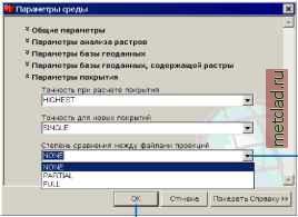 Главная --> Промиздат --> Построение моделей технологопроцесса Определение параметров покрытия Параметры среды в разделе Параметры покрытия в диалоговом окне Параметры среды применимы только к инструментам покрытий. Может быть изменено значение по умолчанию для следующих параметров: точность для новых или вычисленных покрытий и степень сравнения между файлами проекций. Каждый из этих параметров обсуждается далее. Подсказка Альтернативный способ получить доступ к диалоговому окну Параметры среды Нажмите правую кнопку мыши в окне ArcToolbox и выберите Параметры среды. См. также Обратитесь к разделу О параметрах среды в этой главе за дополнительной информацией по определению параметров для приложения, модели или процесса в модели. Просмотр параметров покрытия для приложения 1. Откройте меню Инструменты в Главном меню приложения, в котором вы работаете, и выберите Опции. 2. Откройте закладку Геообработка. 3. Нажмите Параметры среды. Откроется диалоговое окно Параметры среды. 4. Выберите Параметры покрытия, чтобы просмотреть параметры, значения которых могут быть изменены. 5. Нажмите OK. ![]() ![]() До запуска инструментов покрытия, вы можете задать степень подобия между файлами входных проекций, необходимую для их совпадения. Используйте эту опцию, если хотите проверить входные проекции до запуска инструментов покрытий. Доступны следующие параметры: НЕТ (NONE) - не выполняется сравнение файлов проекций. Любое сочетание информации о проекциях приведет к сопоставимости данных. Инструменты будут запускаться независимо от проекций входных данных. Эта опция предлагается по умолчанию. ЧАСТИЧНО (PARTIAL) - по меньшей мере, должен быть определен один файл проекции; другие могут быть неизвестны, что приведет к их сопоставлению. Заданные файлы проекций должны быть идентичны. ПОЛНОСТЬЮ (FULL) - вся информация о проекции должна быть задана и идентична в файлах проекций каждого из входных наборов данных. Аналогичные проекции и параметры, которые определены различным образом, могут оказаться не сочетаемыми. Например, единицы измерения UNITS METERS и UNITS1, которые аналогичны, не совпадут. В случае определения проекций UTM (Поперечной проекции Меркатора) и State Plane по их центральным меридианам или параллелям они не совпадут с теми же проекциями, но заданными с использованием опции ZONE (ЗОНА). Определение степени сравнения между файлами проекций 1. Повторите шаги 1-4 задания Просмотр параметров покрытия для приложения . 2. Нажмите на стрелке вниз меню Степень сравнения между файлами проекций и выберите нужную вам степень сравнения до запуска инструментов - NONE (НЕТ), PARTIAL (ЧАСТИЧНО), или FULL (ПОЛНОСТЬЮ). 3. Нажмите OK. ![]() О точности покрытий Что такое точность координат? Координатная точность связана с математической точностью представления координаты и основывается на возможном числе значащих цифр, которые могут храниться для каждой координаты. Покрптия ArcInfo ESRI хранятся в координатах либо одинарной (single), либо двойной (double) точности. Одинарная точность сохраняет до семи значащих цифр для каждой координаты. Это означает, что при хранении в режиме одинарной точности значения, составляющие величину 4 999 999,6 единиц измерения или 5 000 000,4 единиц измерения, округляются до величины в 5 000 000 единиц измерения. Двойная точность удерживает вплоть до 15 значащих цифр - обыкновенно от 13 до 14 
