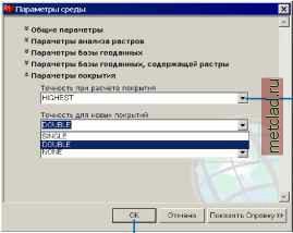 Главная --> Промиздат --> Построение моделей технологопроцесса использованием двойной точности, а покрптия, требующие меньшей картографической точности, например, типы почв, - в координатной системе одинарной точности. правила точности Вы можете определить точность координат вновь созданнхх и втчисленнхх покрптий. Эти два правила касаются создания и обработки. Правило создания определяет точность, с которой следует создавать все новые покрптия. Каждый раз, когда создается новое покрытие, координатная точность нового покрытия определяется текущим правилом создания. По умолчанию принята одинарная точность. Таким образом, если вы хотите создать покрытие двойной точности, то должны определить точность новых покрптий как ДВОЙНУЮ. ![]() Чтобы всегда создавать новые покрытия с двойной точностью, задайте в диалоговом окне Параметры среды точность для новых покрытий как ДВОЙНУЮ (DOUBLE). Все новые покрытия, созданные инструментами, используемыми для создания покрытий, такими как инструмент Создать покрытие, будут иметь двойную точность. Правило обработки определяет точность, с которой следует создавать все производные покрытия. Когда новое покрытие со- здается из одного или нескольких существующих покрытий, например, результат работы инструментов Буферные зоны или Обновить, координатная точность нового покрытия отражает текущее правило обработки. Например, точность результирующего покрытия может быть максимальной из точностей набора входных покрытий. Таким образом, в случае, если все входные покрытия находятся в координатной системе одинарной точности, то результирующее покрптие будет одинарной точности; если же по меньшей мере одно из покрытий является покрытием двойной точности, результирующее покрытие будет двойной точности. Установив значение на МИНИМАЛЬНАЯ (LOWEST) для точности вычисленных покрытий, точность вычисленных покрытий будет взята из входного покрытия с самой низкой точностью. Таким образом, если все входные покрытия имеют двойную точность за исключением одного с одинарной точностью, точность вычисленного покрытия будет одинарной. Чтобы создавать покрптия двойной точности независимо от точности входных покрытий, предварительно установите правило обработки даннхх на ДВОЙНУЮ точность. ![]() Чтобы всегда создавать вычисленные покрытия с двойной точностью, независимо от точности входных покрытий, определите в диалоге Параметры среды правило обработки как ДВОЙНАЯ до того, как вы запустите инструменты геообработки. Определение точности для покрытий До того, как вы начнете работать с инструментами в наборе Инструменты покрытия, вам нужно определить, какая должна быть точность выходных покрытий. Новые покрытия - это те покрытия, которые, например, создаются с использованием инструмента Создать покрытие. Вычисленные покрытия - это те, которые получены с помощью инструментов, использующих входные данные для вычисления выходного покрытия, например, покрытий, созданных после запуска инструмента Буфер. Точность, используемая по умолчанию, определена для новых созданных покрытий как ОДИНАРНАЯ, а при расчете покрытия - как МАКСИМАЛЬНАЯ (HIGHEST). Если вы хотите, чтобы новые создаваемые покрытия были двойной точности, определите точность для новых покрытий как двойную. Если вы хотите, чтобы вычисленные покрытия все