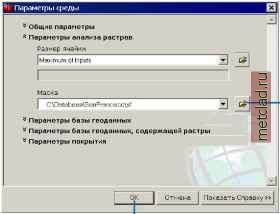 Главная --> Промиздат --> Построение моделей технологопроцесса Размер ячейки, или разрешение, для результатов анализа, по умолчанию, определен равным самому большому размеру ячейки входных наборов растровых данных для инструмента, максимальному из входных данных. Размер ячейки по умолчанию, когда в качестве входных данных для инструмента используется класс пространст-веннгх объектов, - это ширина или высота (в зависимости от того, что меньше) экстента класса пространственных объектов, деленная на 250. Изучите предупреждение при определении размера ячейки, меньше, чем у входных наборов растровых данных. Новые данн1е не создаются; ячейки интерполируются с использованием для пересчета метода ближайшего соседа. Точность результата соответствует самым грубым входным данным (с сам1м низким разрешением). Другие доступные опции: Опция Минимальный из входных данных (Minimum of Inputs) определяет размер ячейки растра для результатов анализа равным наименьшему размеру ячейки из используем1х входн1х наборов растров1х данн1х; опция Как указано ниже позволяет вам задавать размер ячейки для результатов анализа; и опция Как у слоя позволяет вам выбирать входной растровый слой, на размере ячейки которого будет основываться размер ячейки результатов анализа. Для инструментов, которые в качестве входных данных могут использовать только пространственн1е объекты, вы можете задать размер ячейки для выходного растра в диалоговом окне инструмента. определение размера ячейки для выходных данных 1. Повторите шаги 1-4 задания Просмотр параметров анализа растра для приложения . 2. Щелкните на стрелке вниз меню Размер ячейки и выберите необходимую опцию. Если вы выберете опцию Как указано ниже, наберите значение для размера ячейки. Или же, нажмите Обзор и перейдите к набору растровых данных, из которого вы хотите заимствовать размер ячейки. Обратите внимание, что опция Как у слоя доступна только в том случае, если вы обращаетесь к диалоговому окну Параметры среды из сеанса ArcMap и добавили слой на карту. 3. Нажмите OK. ![]() Иногда вы хотите выполнить анализ только для ячеек в конкретной области. Маска определяет эти ячейки в рамках экстента анализа и будет учтена при запуске инструмента. Если маска была наложена на входной растр, который вы хотите использовать для анализа, будут обрабатываться только те ячейки, которые перекрываются маской. Всем другим ячейкам результирующего растра после запуска инструмента будет присвоено значение NoData (ИетДаннгх). Определение маски анализа - это процесс, состоящий из двух этапов. Сначала маска анализа должна быть создана, если только у вас уже нет готовой. Маска анализа может быть пространственным объектом (точкой, линией или полигоном) или растровыми данными. Вы можете создавать пустой класс пространственных объектов в ArcCatalog, затем определять область интереса (маску) с использованием панели инструментов Редактор в ArcMap. Или же, вы можете создать маску-растр с использованием инструмента Переклассифицировать, определяя значение ячеек, для которых вы хотите создать результирующий файл, и присваивая значение NoData (Иет данных) остальным ячейкам. Маска анализа затем должна быть задана в диалоговом окне Параметры среды. Определение маски 1. Повторите шаги 1-4 задания Просмотр параметров анализа растра для приложения . 2. Наберите п