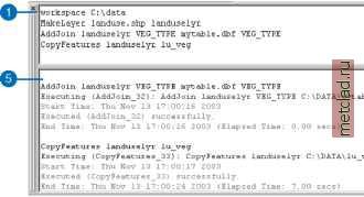 Главная --> Промиздат --> Построение моделей технологопроцесса Работа с командной строкой Наберите любой символ в командной строке, чтобы увидеть список доступных команд (инструментов и параметров среды) в выпадающем списке. После ввода названия команды и ввода пробела, появится описание способа использования инструмента. Способ использования - это синтаксис параметра команды. Оно показывает вам параметры, для которых должны быть заданы значения. ► Подсказка Альтернативный способ прокрутки списка инструментов и параметров среды Воспользуйтесь стрелками вверх и вниз на клавиатуре, чтобы прокрутить список названий инструментов и параметров среды. См. также Перед запуском инструментов из командной строки, вы можете выбрать, либо вы создаете временный результат (по умолчанию), либо добавляете результат к изображению, либо переписываете существующие выходные данные. Обратитесь к разделу Результаты работы инструмента в Главе 3 за дополнительной информацией об этих опциях. Получение списка доступных инструментов и параметров среды 1. Наберите любой символ в командной строке, чтобы увидеть список инструментов и параметров среды. ![]() ввод названий инструмента или параметра среды 1. Наберите несколько первых букв названия инструмента и параметра среды, затем воспользуйтесь курсором мыши, чтобы просмотреть список и выбрать инструмент или параметр среды, который вы хотите использовать. 2. Нажмите клавишу пробел, чтобы добавить название инструмента или параметра среды в командную строку. После нажатия клавиши Пробел после названия инструмента или параметра среды автоматически добавляется пробел, и отображается способ их использования. Способ использования помогает вам добавлять значения для параметров инструмента или параметров среды. ![]() ![]() Чтобы запустить инструмент из командной строки, набор инструментов, в который входит этот инструмент, сначала должен б1ть добавлен в окно ArcToolbox. Чтобы запустить инструмент, вам сначала надо набрать название инструмента, за которым следует ряд значений параметров. После ввода названия инструмента, нажмите пробел, чтобы просмотреть способ использования инструмента. Способ использования помогает вам ввести подходящие значения для параметров. Обязательные параметры появляются в описании способа использования между символами <>, а дополнительные параметры - между символами {}. Вы должны ввести значение для обязательных параметров, но вам необязательно определять значения для дополнительных параметров. Подсказка дополнительные параметры Чтобы использовать значение по умолчанию для всех дополнительных параметров, вместо ввода # или на месте значения, просто оставьте пробелы вместо всех значений дополнительных параметров. См. также За информацией о добавлении наборов инструментов в окно ArcToolbox обратитесь к Главе 4 Работа с наборами инструментов . Запуск инструмента из командной строки 1. Наберите название инструмента и нажмите клавишу Пробел, чтобы просмотреть способ его использования. Обратите внимание, что вы можете набрать первые несколько символов из названия инструмента, а затем нажать клавишу Пробел, чтобы ввести оставшуюся часть названия. 2. Задайте значения для каждого параметра, отделяя один от другого пробелом. Параметр, который требует, чтобы для него было задано знач