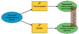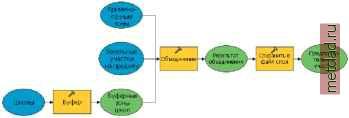 Главная --> Промиздат --> Построение моделей технологопроцесса Построение моделей Внутри окна ModelBuilder окно отображения - это рабочая область, где вы выполняете построение блок-схемы своей модели. Блок-схема состоит из процессов, связанных вместе, которые будут выполняться в определенной последовательности при запуске модели. Элементы на блок-схеме модели представляют инструменты и значения их параметров. Процесс состоит из элемента инструмента и значений его параметров. В типичном процессе элементы представляют значение параметра входных данных, инструмент, который работает со значением параметра входных данных, и значение параметра производных данных. Соединительные линии указывают на последовательность обработки. Когда вы вводите значение для параметра входных данных, либо в диалоговом окне инструмента или путем перетаскивания дан-нгх в окно ModelBuilder, созданный элемент - это переменная, которую можно использовать в нескольких процессах. Переменные могут быть созданы для любого параметра, что облегчает обмен любым значением параметра между процессами. Входная переменная Инструмент Переменная произворных рванных ![]() Элементы в модели - Процесс - Часто в модели будет присутствовать несколько процессов, и они могут быть выстроены в цепочку таким образом, что производные данные от одного процесса становятся входными данными для другого процесса. На приведенной далее блок-схеме приведен концептуальный общий вид модели, построенной из трех процессов. ![]() Концептуальный общий вид модели: Модель содержит процессы, процесс включает элемент инструмента и значения его параметров. В приведенном выше примере значения параметров данных проекта и производных данных используются несколькими процессами. Каждый элемент в модели имеет уникальный символ. Элементы данн1х проекта представляют входные географические данные, которые существуют до запуска модели. Данные, на которые ссплаются эти элементы, используются как значения входного параметра для инструментов в модели. Элементы дан-н1х проекта представлены темно-голубыми овалами и являются переменными по умолчанию. Переменные раскрывают значения параметров, следовательно, они могут бпть использованы в нескольких процессах. Элементы инструмента представляют операции, которые будут выполняться с использованием значений параметра входных данных. Элементы инструментов показаны в виде желтых прямоугольников. -Элементы производных данных представляют вход-Г1роизводныеА ные данные, созданные в результате работы инструментов. Данные, на которые ссьшаются эти эле- Инструмент менты, не существуют до запуска модели. Исключение составляет случай, когда используется инструмент, обновляющий данные проекта, например, инструмент Добавить поле. В данном случае производные данные в действительности являются данными проекта с дополнительным полем, которое вы добавили. Производные данные от одного процесса могут служить входными данными для другого процесса. Элементы производных даннгх показаны зелеными овалами. Они являются переменными по умолчанию. Переменные раскрывают значения параметров, следовательно, они могут быть использованы в нескольких процессах. Элементы значений ссплаются на значения параметров негеографических даннхх. Значения, заданные для этих элементов, 