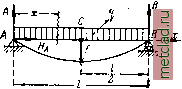 Главная --> Промиздат --> Коэффициент поперечной деформации § 110] УРАВНЕНИЕ ИЗОГНУТОЙ ОСИ БАЛКИ, ЗАЩЕМЛЁННОЙ КОНЦОМ 357 Возьмём балку № 24; для неё U=289 см и У=3460 см; принимая Е =2 10 получаем: г 2 .10 . 23.10 /в ---ine.Q/in - - и, см у 3 . 2 . 10 . 3460 2-Ю. 2-10 1 1 2.2.10 .3460 - -радиана Из этого подсчета видно, что действительно деформации обычных балок малы; наибольший прогиб составляет 0,78 1 - = 260 ДОЛЮ пролета; квадрат же величины наибольшего угла поворота равен (173)- 30000 Этой величиной, конечно, можно пренебречь по сравнению с единицей (см. формулу (18.5)). Пример 74. Рассмотреть балку, защемлённую концом, нагружённую сплошной нагрузкой q т/м (фиг. 283). Повторяя ход вычислений, имеем: ![]() Фиг. 283. Возведя (1 - х) в квадрат и интегрируя трёхчлен почленно, как и в пре- ды0гщем примере, мы получили бы для произвольных постоянных нулевые значения. Рекомендуя это проделать самим учащимся, применим здесь другой приём интегрирования, представляющий особый интерес при решении задач с более сложной нагрузкой на балке. Так как dx = - d(l - лг), то, не раскрывая выражения (/ - xf и интегрируя первый раз по [-d(l - x% получаем: Интегрируя первое слагаемое правой части по [-d(l - x)l а второе по dx, находим: EJy = -f(l-xfJrCx + D. При таком методе интегрирования- постоянные С и D не определяют непосредственно угла и прогиба в начале координат и в нуль не обращаются. Вычисляем произвольные постоянные: прих = 0 6 = = 0; С = -; 24- при х = а у = 0; Окончательные уравнения углов поворота и прогибов будут: lu-Q--6 ---6 6 - 6 - -\- 6 24 - (18.16) . (18.17) Наибольшие деформации на правом конце балки при лг = /соответственно равны: max SEJ (18.18) (18.19) Для пояснения действий при ином расположениц начала координат и ином направлении координатных осей рассмотрим эту же балку с той же нагрузкой т/м; однако начало координат возьмём в правом свободном конце. Ось X направим влево, ось у- попрежнему вверх (фиг. 284). Дифференциальное уравнение и его интегралы: ЕУУ = Л!(.)=-, ЕУУ = ---fC, (18.20) EJy--+Cx + D. (18.21) Фиг. 284. В сечении А угол поворота и прогиб равны нулю, т. е, при ;с = / у == в == 0; при х=1 у = 0. Отсюда следует, что Окончательные уравнения углов поворота и прогибов примут следующий вид: , (18.22) (18.23) Задавшись значением л: = 0 и вычисляя наибольшие значения в и /шах сечении В, иолу чим: Отах - В--ggj э /max -/ J bEJ (18.18) (18.19) Как видно, и в этом случае постоянные С и D, делённые на жёсткость балки EJ, дают значения угла поворота и прогиба балки в начале координат. В выбранной системе координат угол имеет положительное значение. В системе же координат, принятой ранее (фиг. 283), этот же угол имел отрицательное значение. На знаке fg изменение в направлении оси х не отразилось. § 111. Интегрирование дифференциального уравнения изогнутой оси балки на двух опорах. Пример 75. Разберём вычисление деформаций для балки, свободно лежащей на двух опорах и загружённой на всём пролёте сплошной нагрузкой q (фиг. 285). Начало координат вы- i берем в левом опорном сечении, ось * X направим вправо. В этой задаче, в отличие от двух предыдущих, для составления выражения М (х) надо найти опорные реакции. По симметрии Л == 5 =-у-, а Н д= 0. Последовательно вычисляем: Фир 285. EJM(x)) Л!(.) = + -;с~ = + -(/л:--х); ![]() ixl x 2 ix* 6 12 + Cx + D. (18.24) (18.25) Нам известны следующие значения прогибов: на опоре Л, то есть при л: = 0 прогиб 3 = 0 > В, * >>а: = / > у=0. Применяя формулу (18.25) сначала к сечению Л, имеем: D = 0; применяя же её к сечению В, получаем следующее уравнение: 6 12 , откуда --2Г-Формулы для у и принимают теперь ви