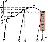 Главная --> Промиздат --> Коэффициент поперечной деформации частей. Для верхней части, сжатой силами Pi, укорочение равно P,h 25 000 . 300 ~ gF ~ 1,3 . 10 . 177 - для нижней, сжатой силами Pi + Рз, укорочение равно (Л + Р.)/. 60 000 . 400 ~ Ef - 1,3 .10 . 177 Полное укорочение равно Д/ = A/i + Д/, = + (Pi+)2 = 0,33 + 1,04 = 1,37 1,4 лглг. Это укорочение можно подсчитать и иначе. Сила Pi и вызываемая ею реакция сжимают колонну по всей её длине / = /iH-/2, сила же Рз и вызываемая этой силой реакция сжимают колонну лишь на длине /3. Полное укорочение получится как сумма укорочений, вызываемых каждой из сил в отдельности, и будет равно K,Pi(h + h) , P,h (Л+Р2)/2 , Pi/i EF EF EF EF* Как и следовало ожидать, пришли к выражению, уже полученному ранее. ГЛАВА III. ЭКСПЕРИМЕНТАЛЬНОЕ ИЗУЧЕНИЕ РАСТЯЖЕНИЯ И СЖАТИЯ РАЗЛИЧНЫХ МАТЕРИАЛОВ И ОСНОВЫ ВЫБОРА ДОПУСКАЕМЫХ НАПРЯЖЕНИЙ. § 11. Диаграмма растяжения. Механические характеристики материала. В предыдущей главе при определении размеров поперечного сечения и вычислении деформаций мы встретились с рядом величин, характеризующих материал не только в пределах пропорциональности (модуль упругости, предел пропорциональности), но и в стадии разрушения (предел прочности). Для полного представления о механических свойствах материала при его растяжении и сжатии до разрушения необходимо изучение на опыте явлений, которые при этом процессе происходят. С точки зрения различия в механических качествах при простом растяжении и сжатии и при обычной температуре материалы могут быть хрупкими или пластичными. Хрупкие материалы разрушаются при очень малых остаточных деформациях. У пластичных же материалов разрушение наступает лишь после значительной остающейся деформации. К первому типу материалов относятся, например, чугун, камень, бетон и др. К пластичным материалам относятся малоуглеродистая сталь, медь и др. Выясним сначала поведение обоих типов материалов в опыте на растяжение вплоть до разрушения. Для этого опыта изготовляется разец призматической формы круглого или прямоугольного сече- ![]() Фиг. 17. ния. На рабочей части образца наносят деления через каждый сантиметр ИЛИ доли сантиметра, чтобы иметь возможность после опыта судить об изменении длины образца. Образец помещают в машину и за1фепляют его концы. Медленно перемещая один конец образца в направлении его оси, стержень растягивают нагрузкой, которая возрастает постепенно, без толчков и ударов. При опыте отмечают ряд последовательных величин нагрузки и измеряют соответствующее им увеличение длины /, намеченной на образце. Результаты измерений нагляднее всего можно представить в виде так назы- /jl ваемой диаграммы растяжения; на большинстве машин имеется приспособление, автоматически зачерчивающее эту диаграмму при растяжении образца. При вычерчивании диаграммы по вертикальной оси откладываются в определенном масштабе нагрузки, а по горизонтальной - абсолютные удлинения. При разрыве образца из пластичного материала-малоуглеродистой стали - диаграмма имеет вид, показанный на фиг. 17. Первая, часть диаграммы до точки Л, соответствующей пределу пропорциональности, представляет собой прямую линию. Ордината OAi представляет собой величину растягивающей силы, соответствующую пределу пропорциональности а, т. е. тому наибольшему напряжению, превышение которого вызывает отклонение от закона Гука; для малоуглеродистой стали величин